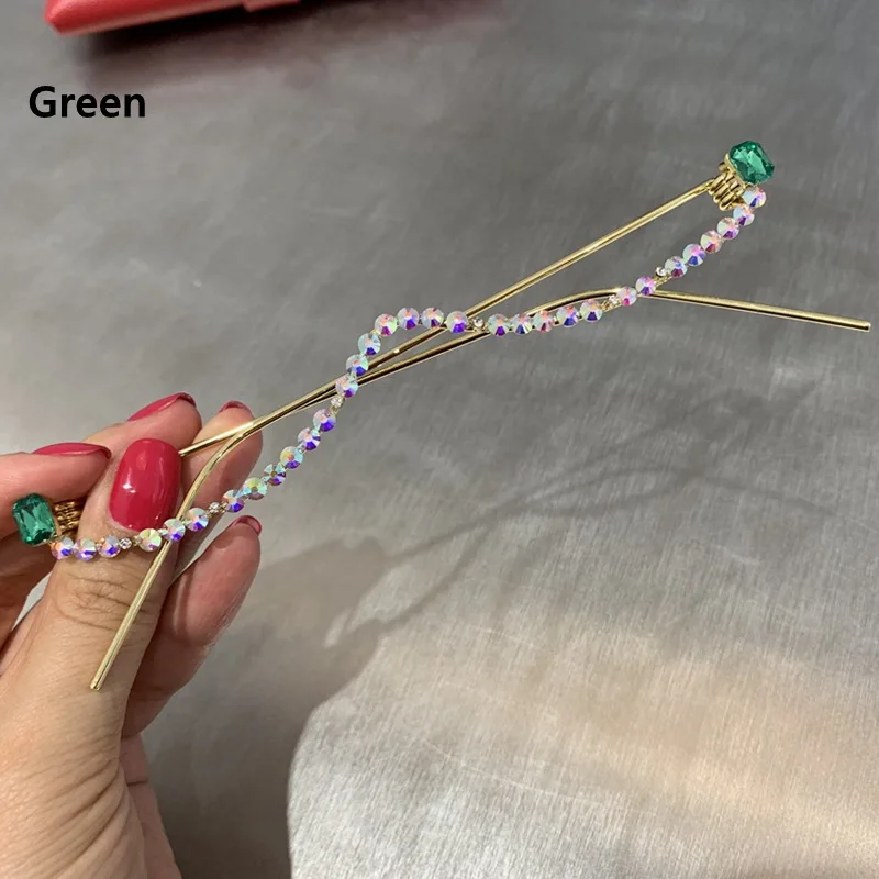 Оправа для очков из сплава, красно-зеленая, с цепочкой без оправы, роскошные бриллиантовые очки в полуоправе