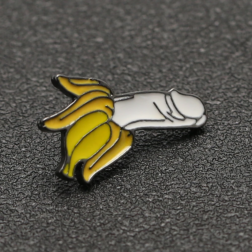 Брошь в виде банана, булавка, фруктовое растение, пенис, член, орган, эмалированный значок, мем, зло, плохой, взрослый, смешные Мультяшные украшения, для женщин, друзей, оптовая продажа