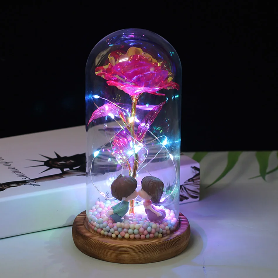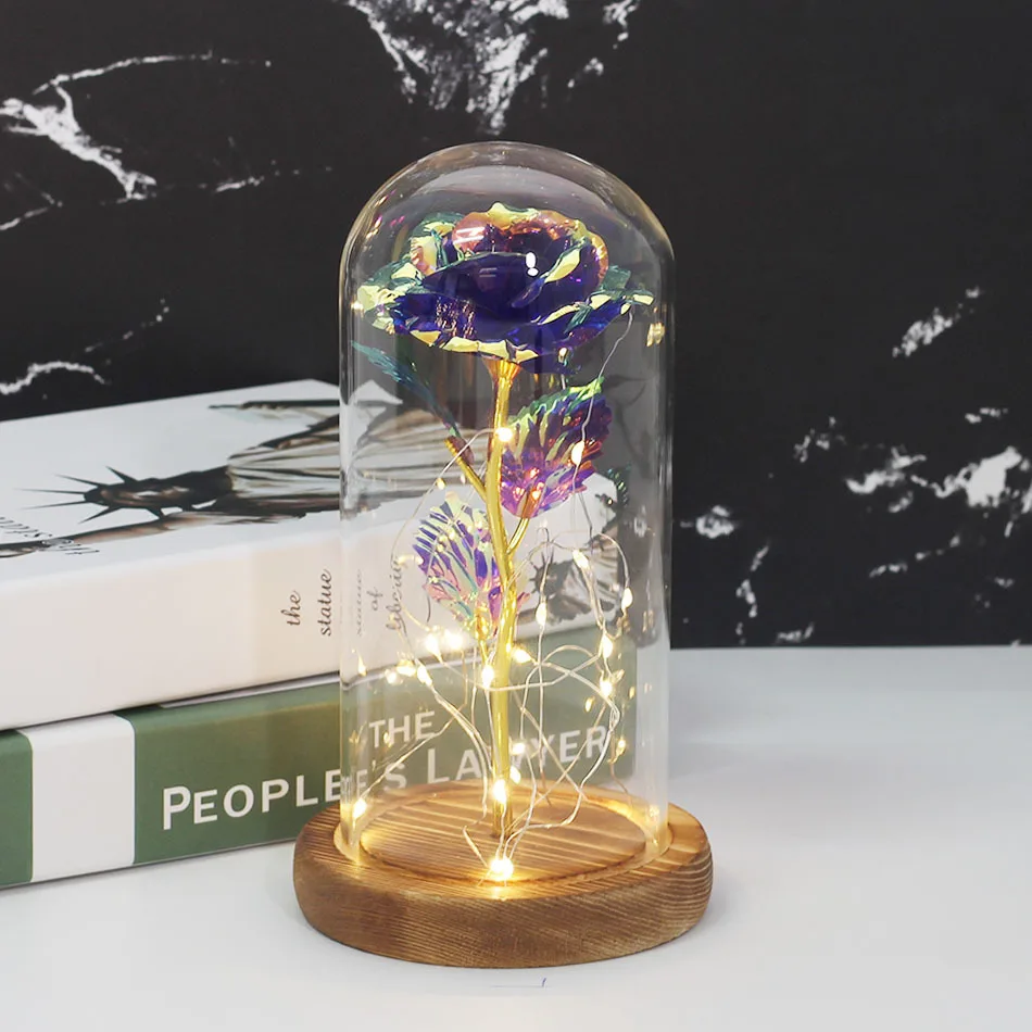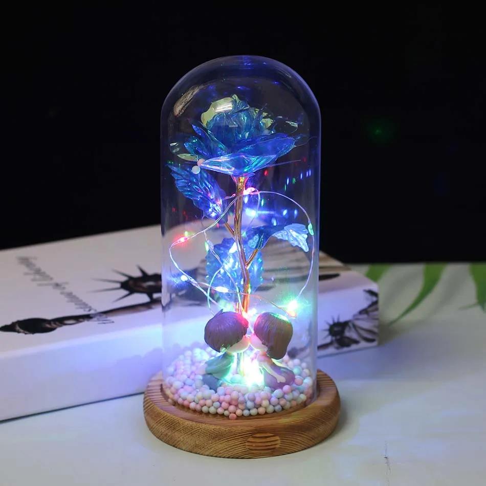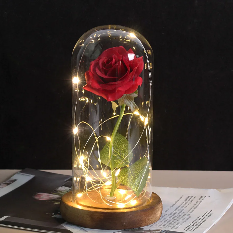Красавица и Чудовище позолоченная красная роза со светодиодной подсветкой стеклянный купол для Дня Святого Валентина Хэллоуина рождественские подарки Прямая поставка