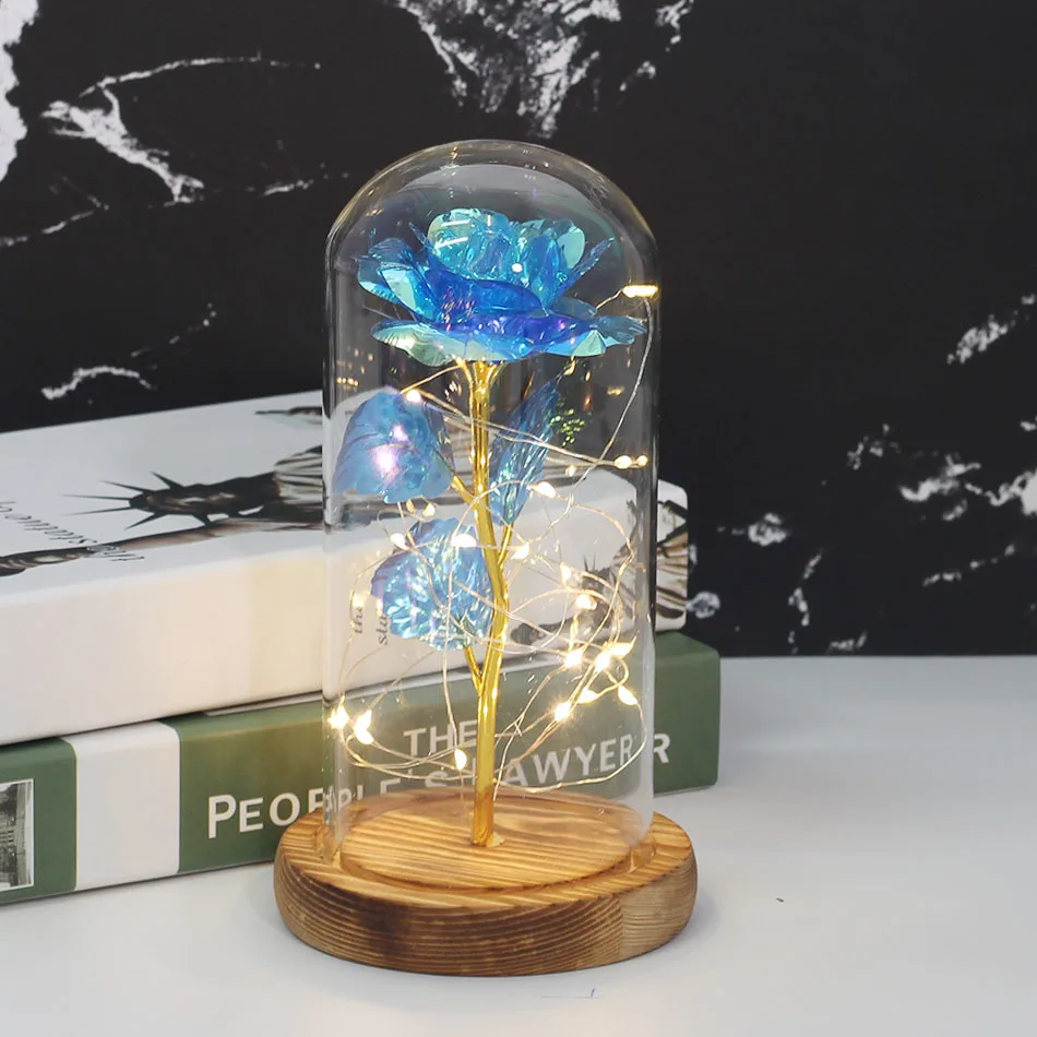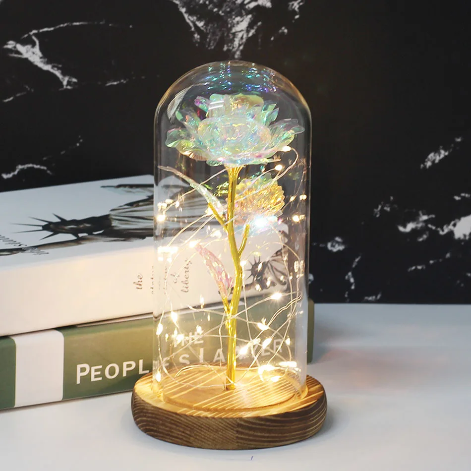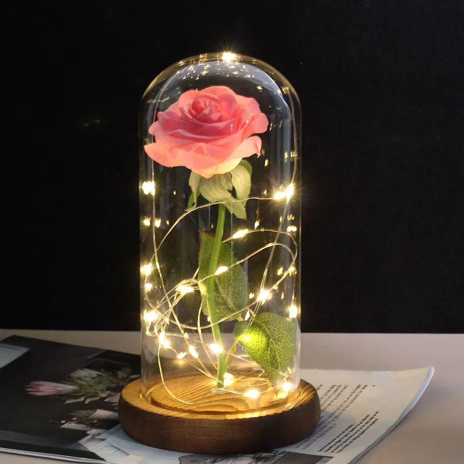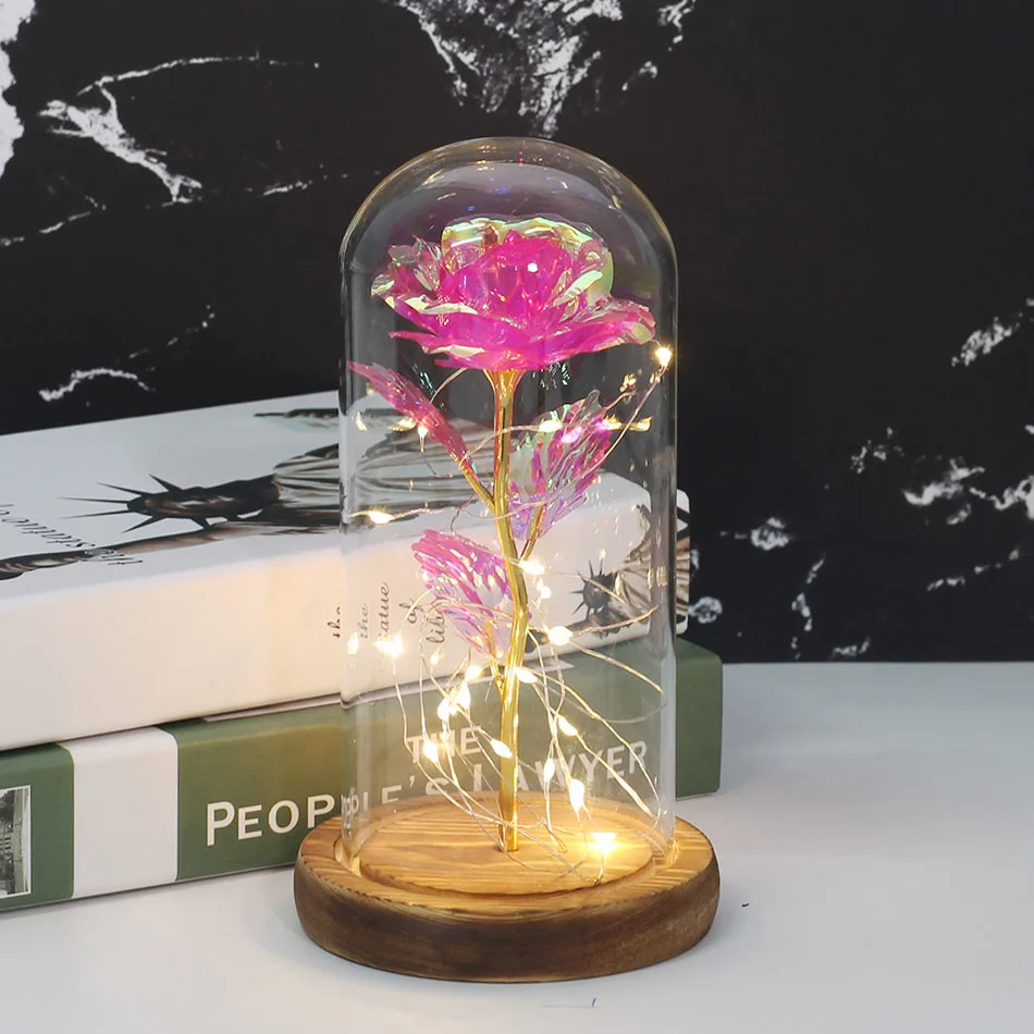 Красавица и Чудовище позолоченная красная роза со светодиодной подсветкой стеклянный купол для Дня Святого Валентина Хэллоуина рождественские подарки Прямая поставка