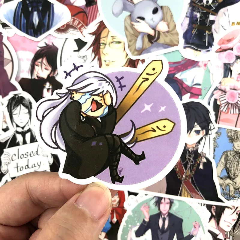 50 наклеек в стиле аниме Черный Батлер, Мультяшные наклейки для детей, ноутбука, велосипеда, мотоцикла, скейтборда, холодильника, автомобиля, наклейки Kuroshitsuji