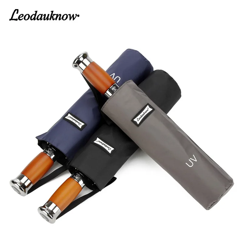 Складной автоматический бизнес-зонт LEODAUKNOW, черная защита от УФ-лучей и ветра, для автомобиля, роскошный мужской зонт от солнца и дождя