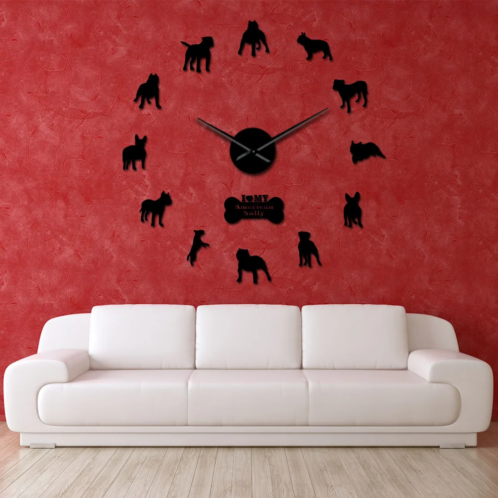 Американский хулиган DIY гигантские настенные часы собаки породы хулигана яма декоративные акриловые зеркальные настенные художественные наклейки современные большие Бескорпусные часы