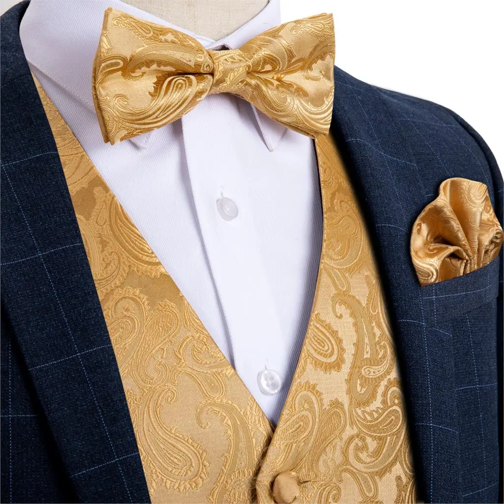 Мужской модный шелковый жилет с золотыми пейсли для свадьбы, набор галстуков для костюма, смокинг, DiBanGu MJ-112