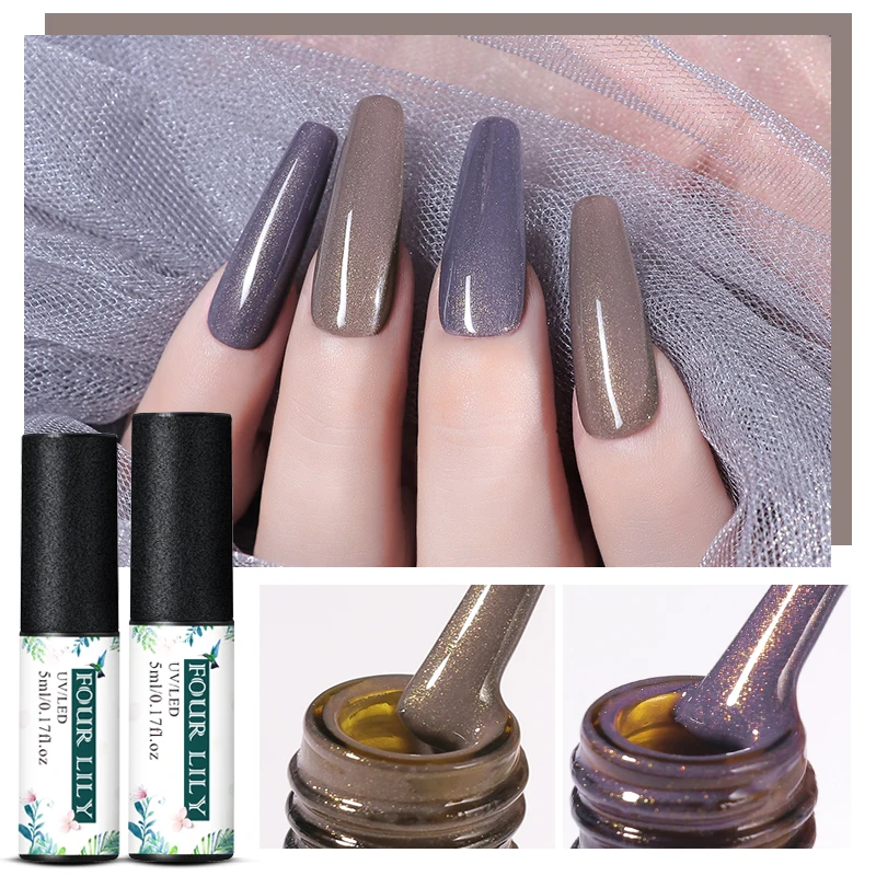 Отмачиваемый лак для ногтей, четыре лилии, 5 мл, голографический лак блеска, УФ-гель для ногтей блеск, маникюр, дизайн ногтей, блестящий лак