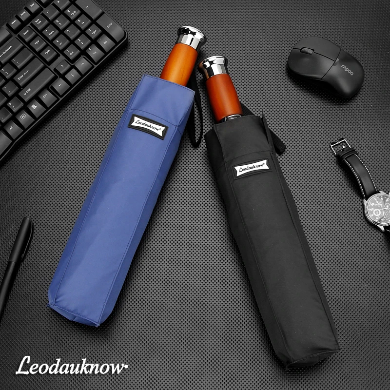 Автоматический зонт LEODAUKNOW, складной, полностью автоматический, с защитой от ветра и УФ-лучей, 10 ребер, в деловом стиле