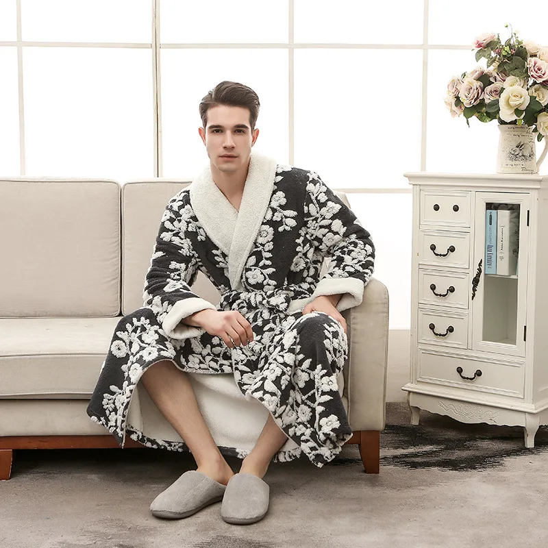 Зимний теплый жаккардовый коралловый флисовый роскошный длинный банный халат для женщин и мужчин, Фланелевое кимоно для влюбленных, утепленный банный халат, одежда для сна, Халат