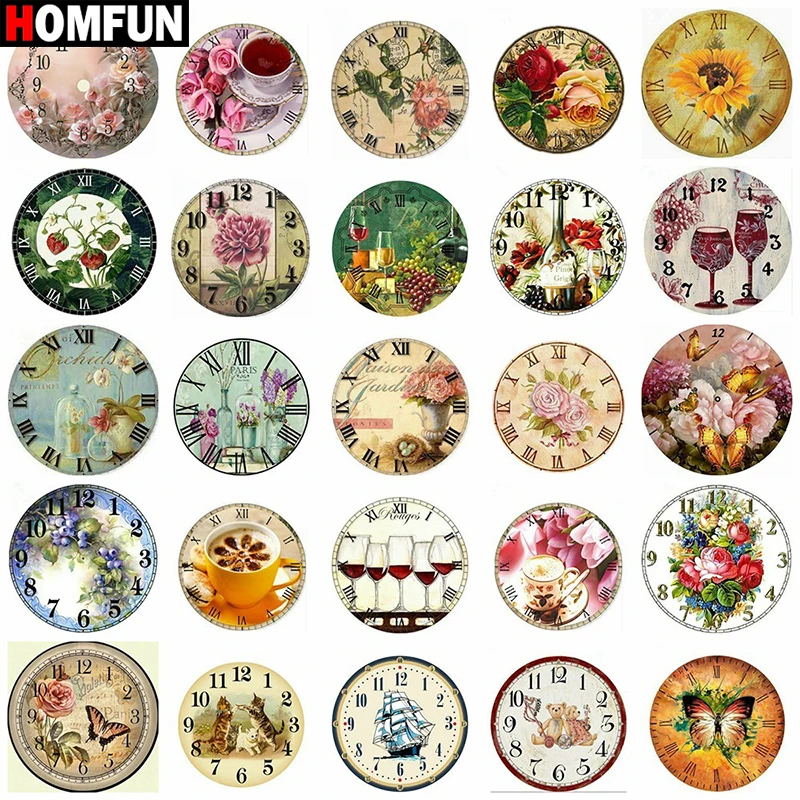 Алмазная 5D Вышивка HOMFUN, набор для рукоделия часы с цветами и животными, картина для творчества, вышивка крестиком, украшение для дома, подарок