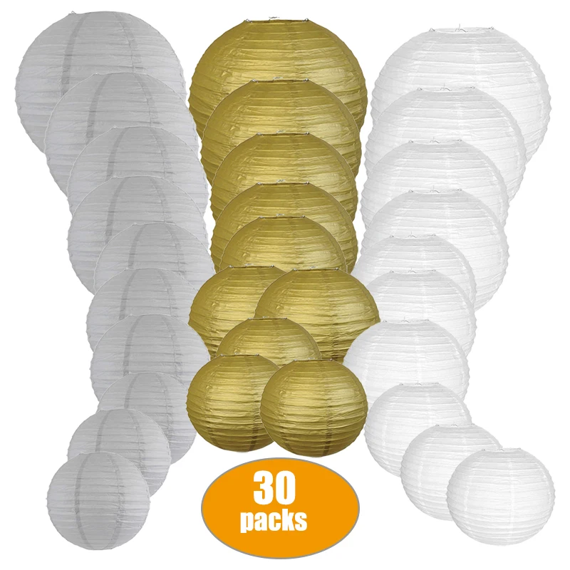 30 шт., золотой, серый, белый, 6 "8" 10 "12" 14 "бумажный фонарь, лампионы/светодиодные фонари для свадеб, детских праздников, рождественских вечеринок и мероприятий