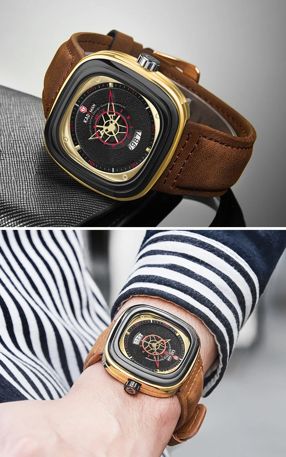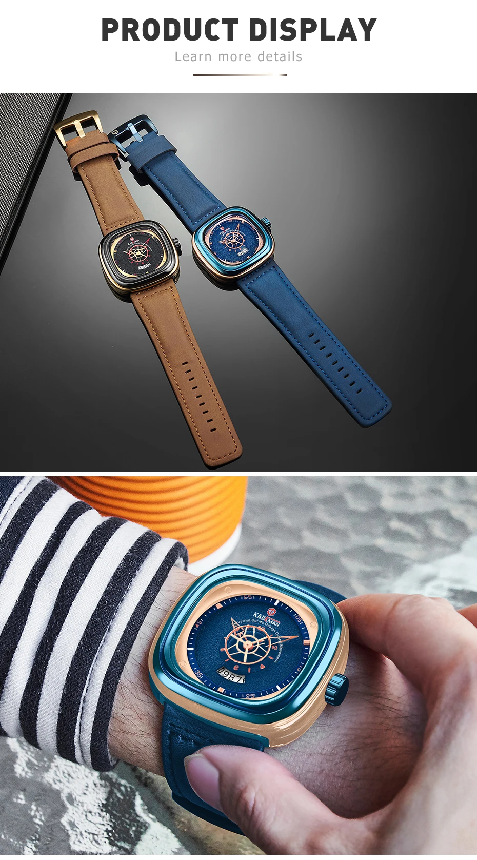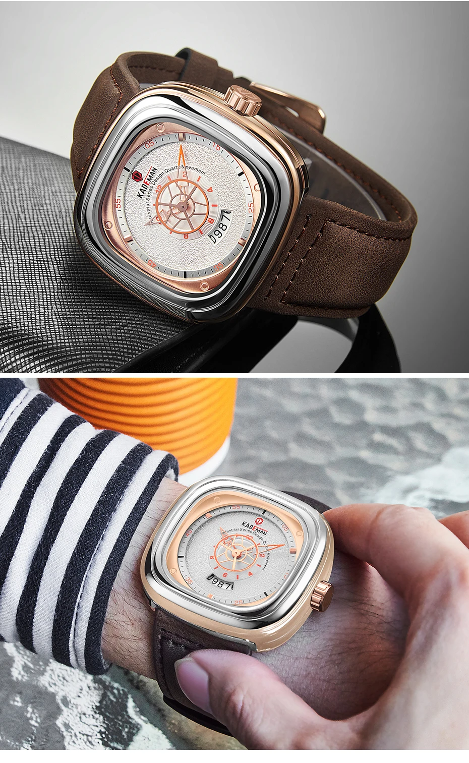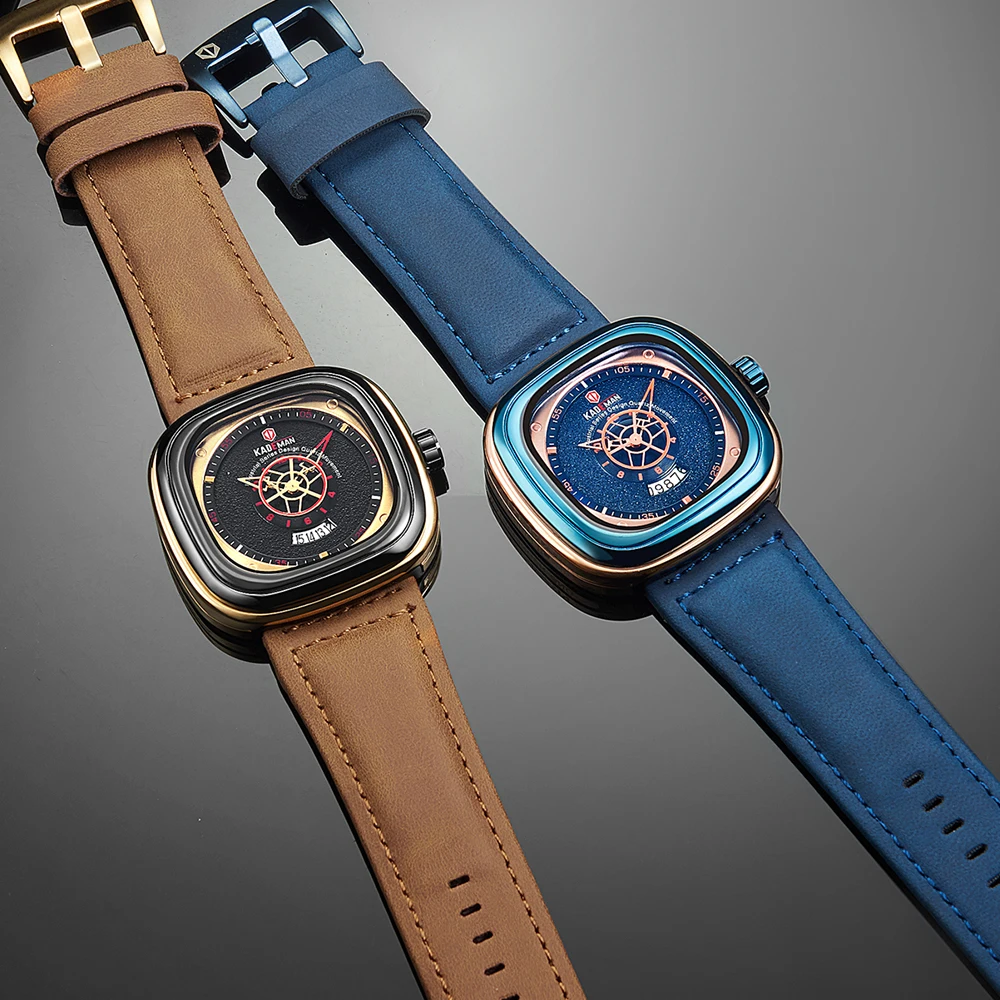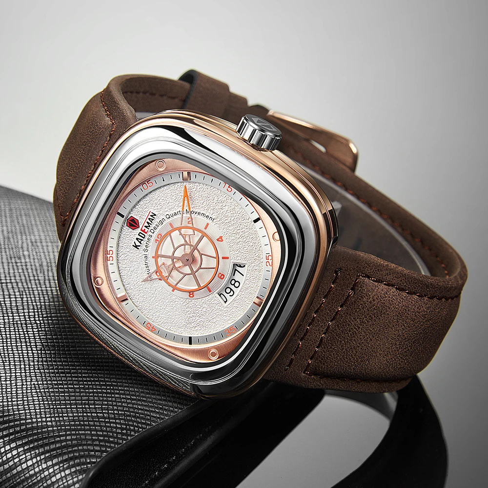 Часы наручные KADEMAN мужские с квадратным циферблатом, роскошные брендовые спортивные кварцевые модные с кожаным ремешком, с датой, 2020