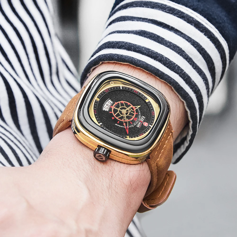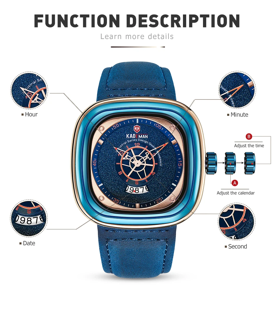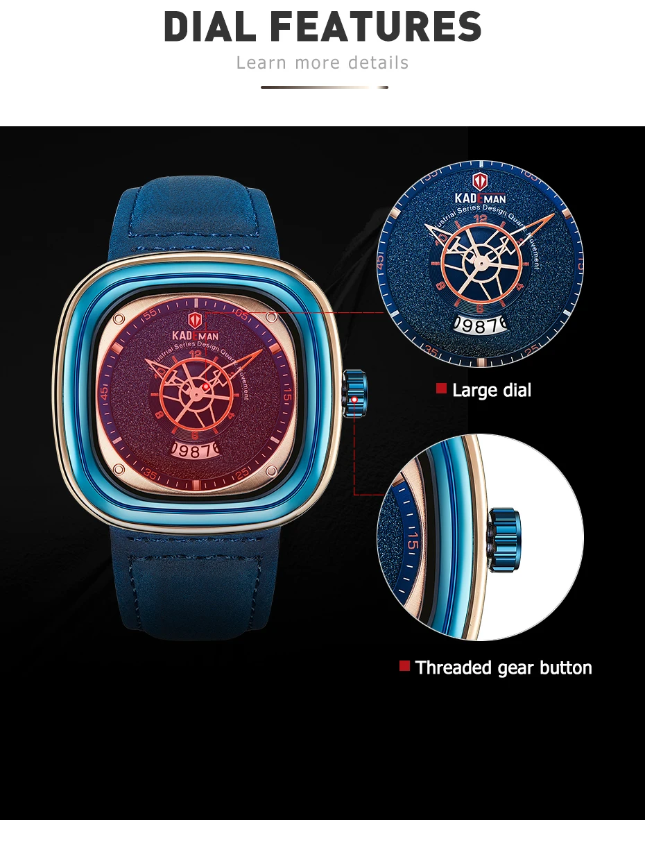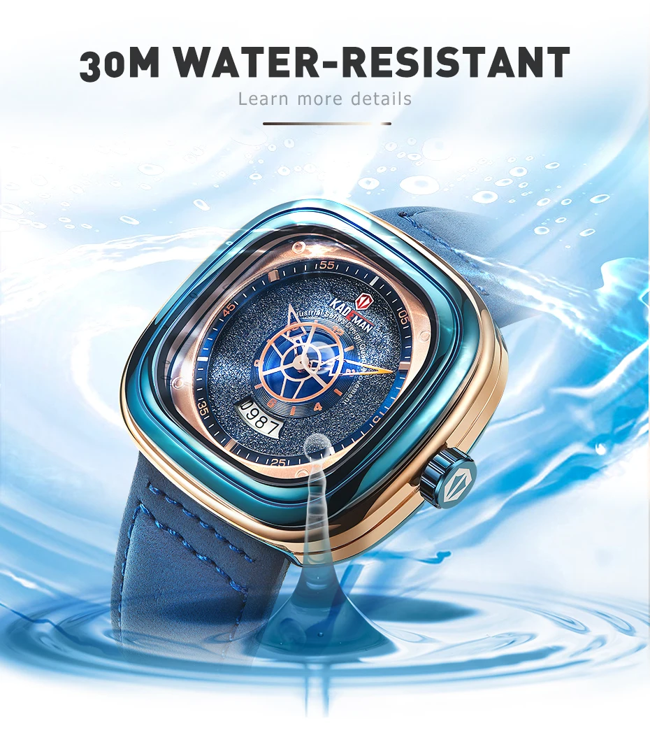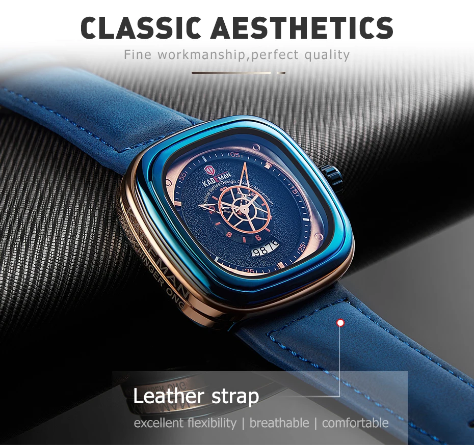 Часы наручные KADEMAN мужские с квадратным циферблатом, роскошные брендовые спортивные кварцевые модные с кожаным ремешком, с датой, 2020