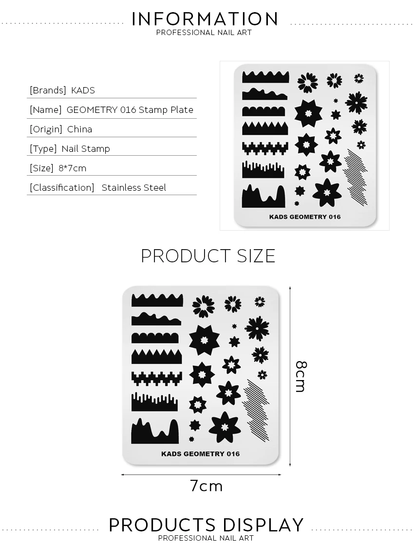 KADS новый дизайн ногтей штамп пластины геометрии 016 ногтей штамповки пластины шаблон изображения пластины дизайн ногтей DIY инструмент украшения