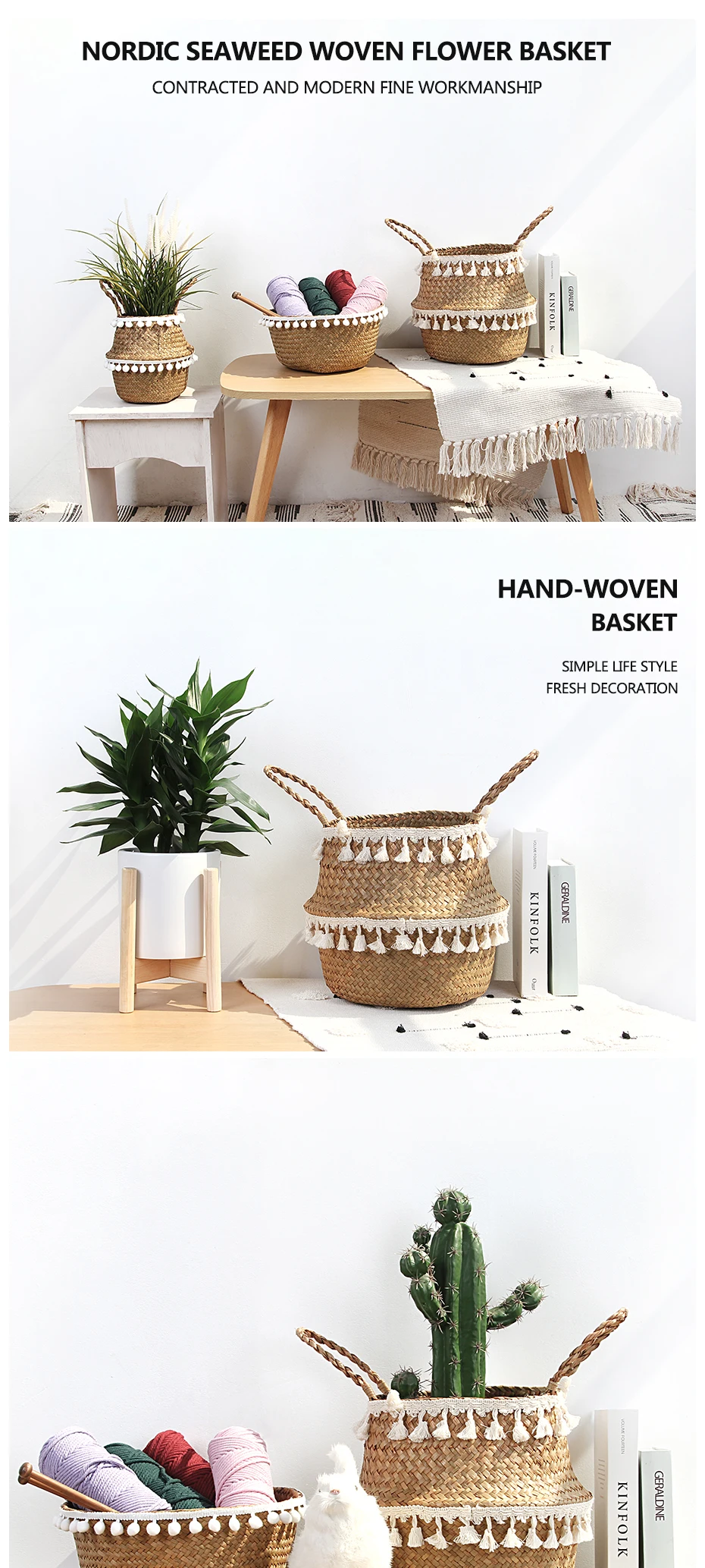 Корзины для хранения морских водорослей растительные плетеные корзины садовая Цветочная ваза горшечный горшок сушеные цветы держатель Boho корзина плетеная корзина