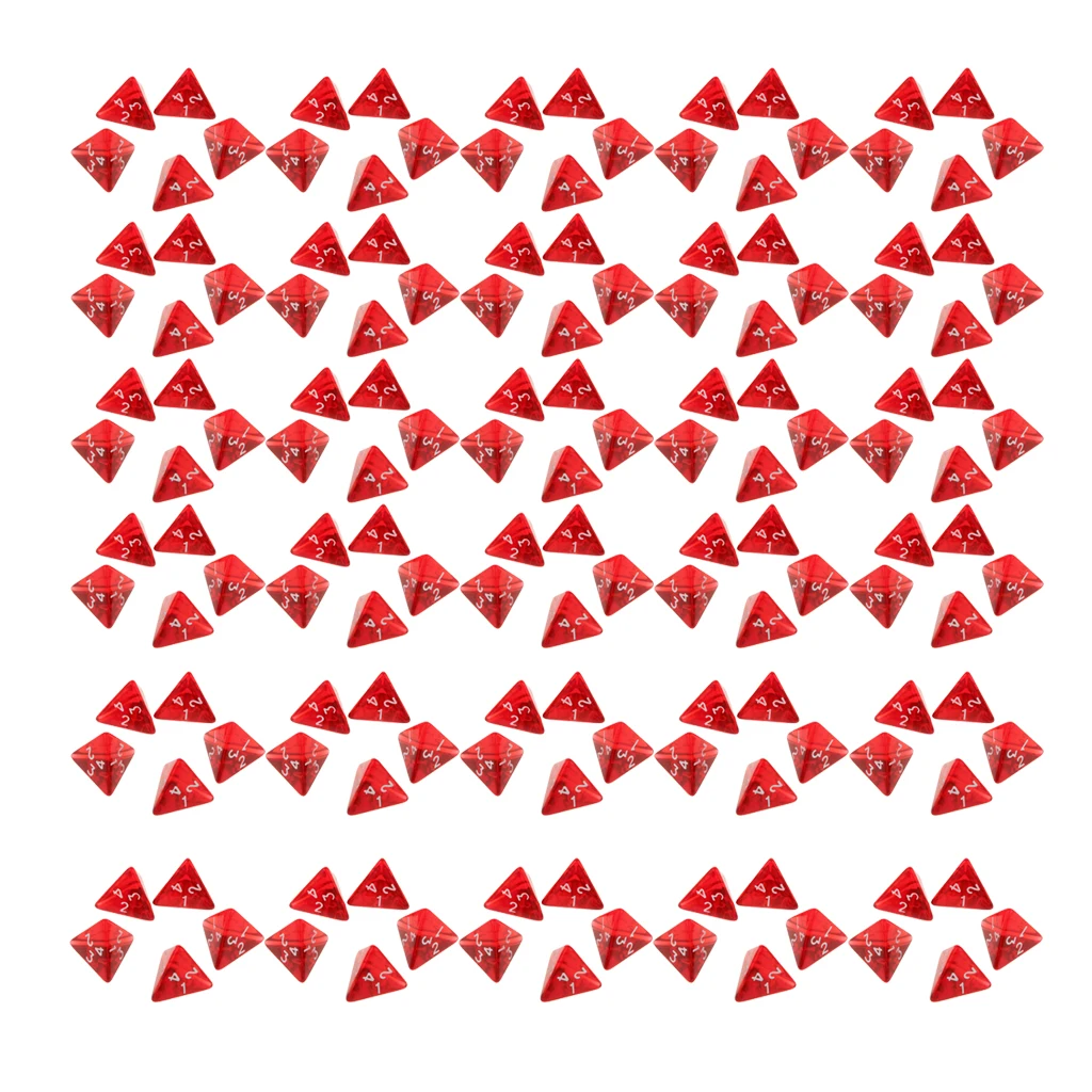2 см многогранные Четырехсторонние игральные кости, настольные игры D4 D D TRPG, цветные игральные кости, красный, упаковка из 150