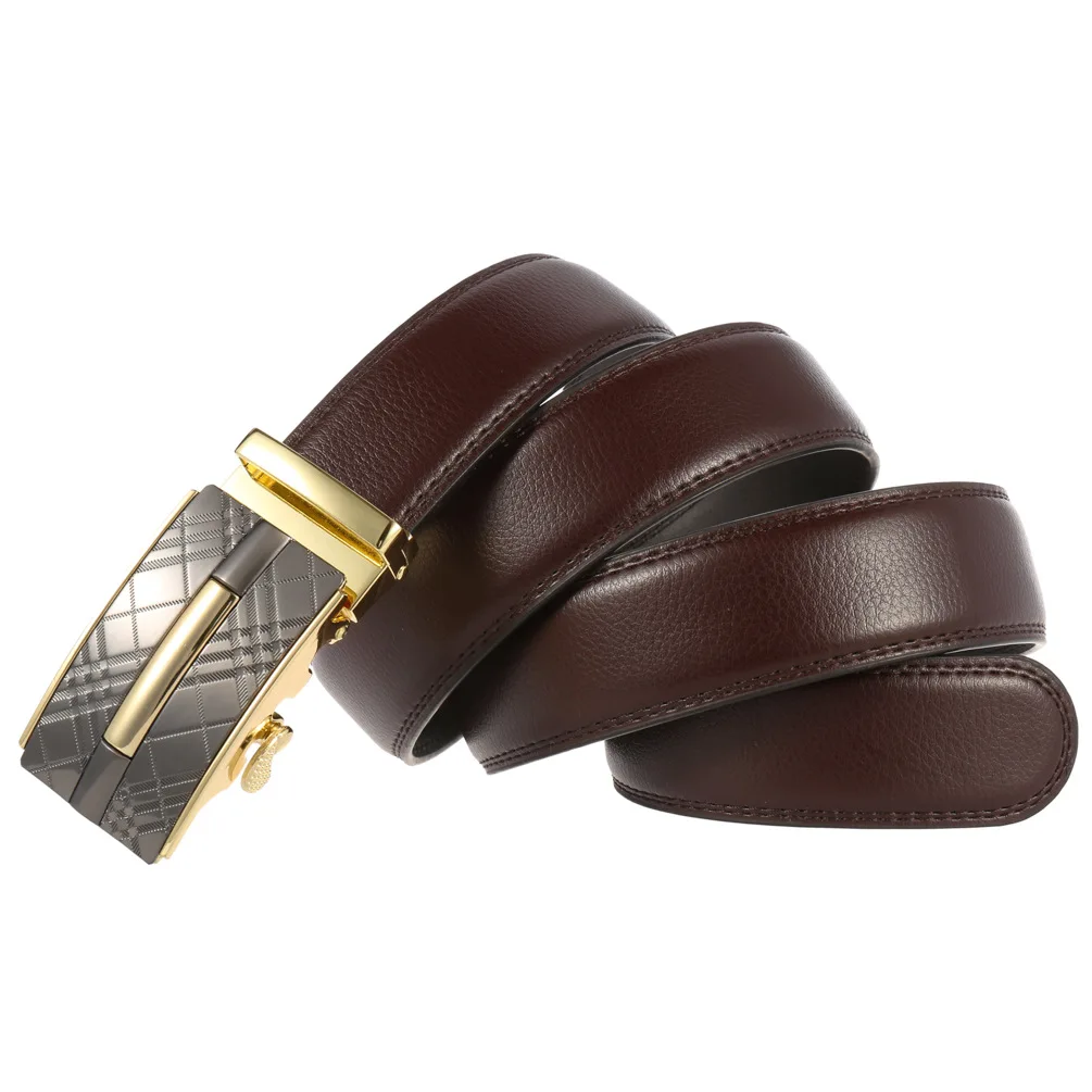 Ремень мужской кожаный с автоматической пряжкой, шириной 3,5 см