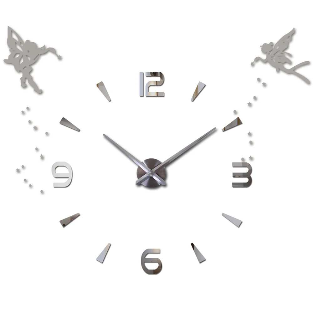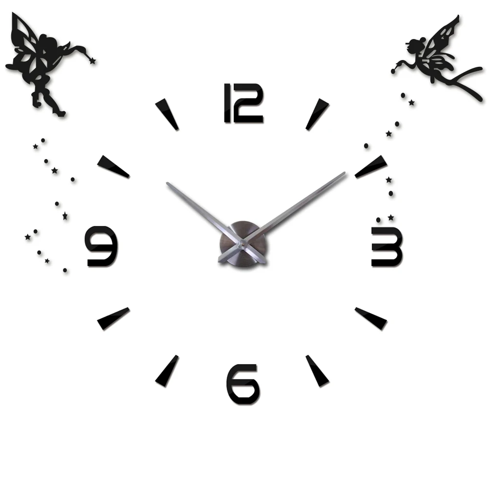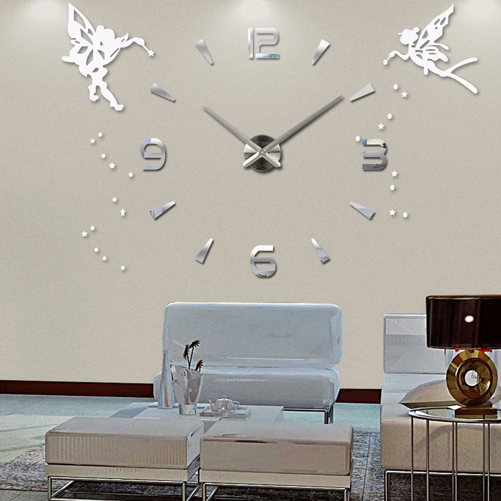 Большие акриловые часы сделай сам в современном стиле, бесшумные кварцевые Самоклеящиеся стикер с ангелом, цифровые настенные часы 3D для украшения гостиной