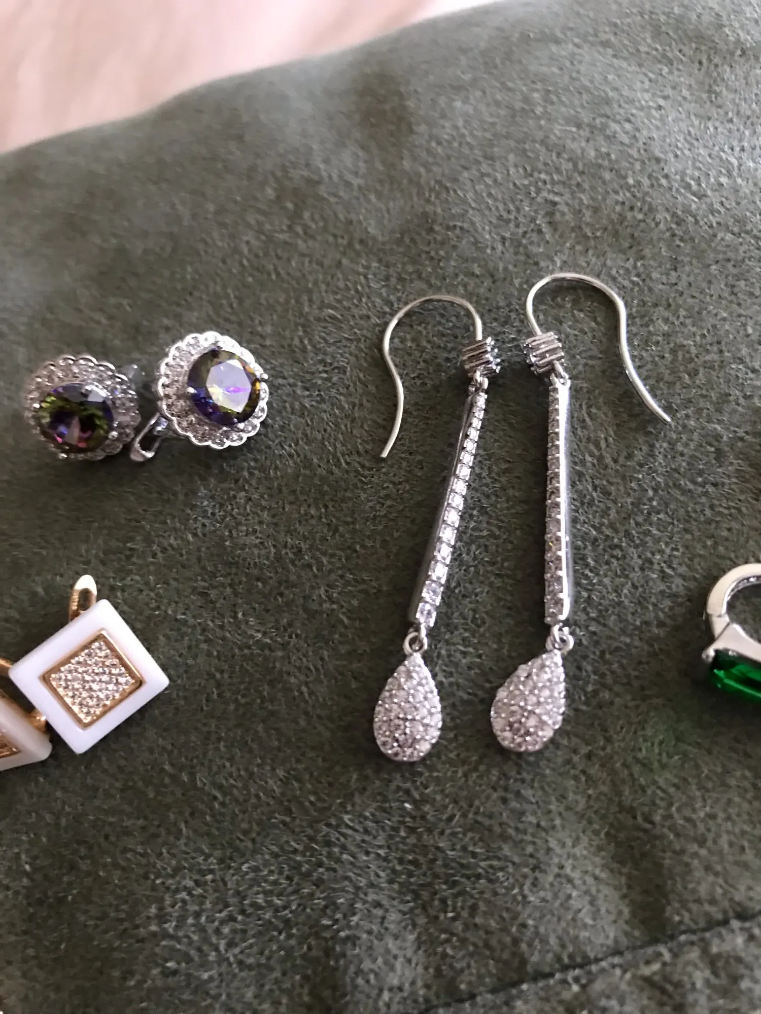 Роскошные серьги-гвоздики серебряного цвета, циркониевые, с зеленым...