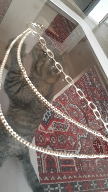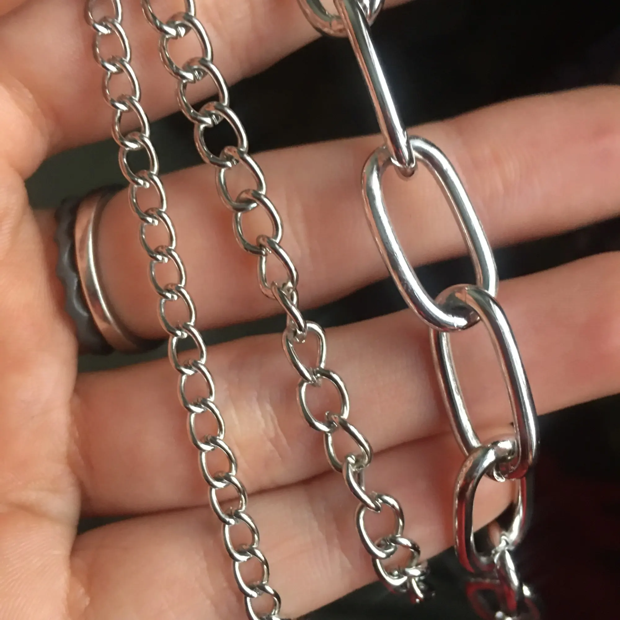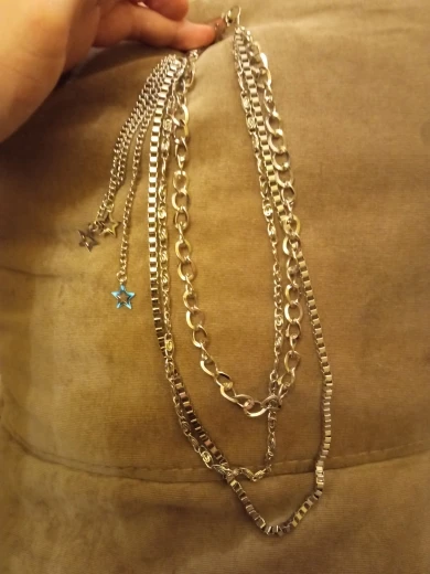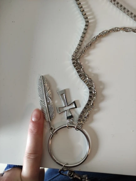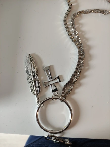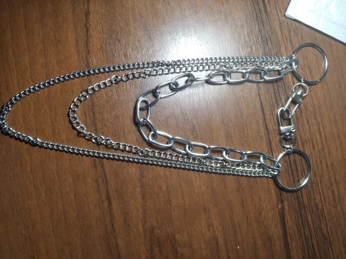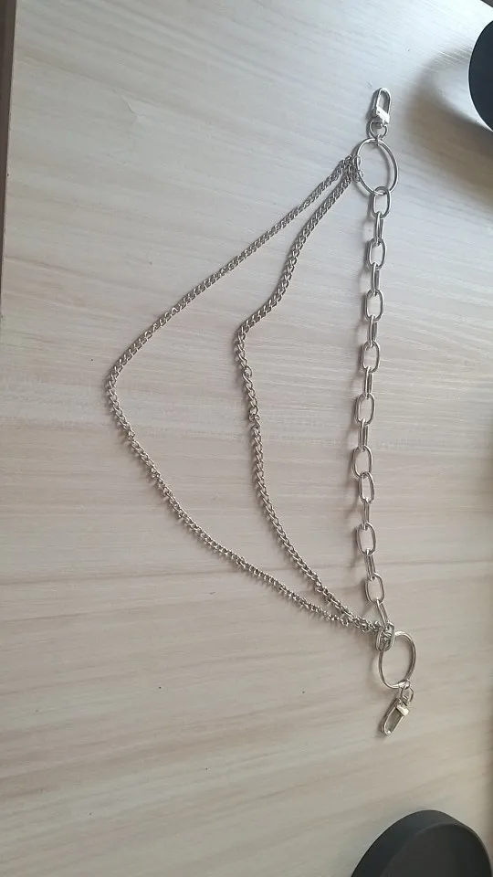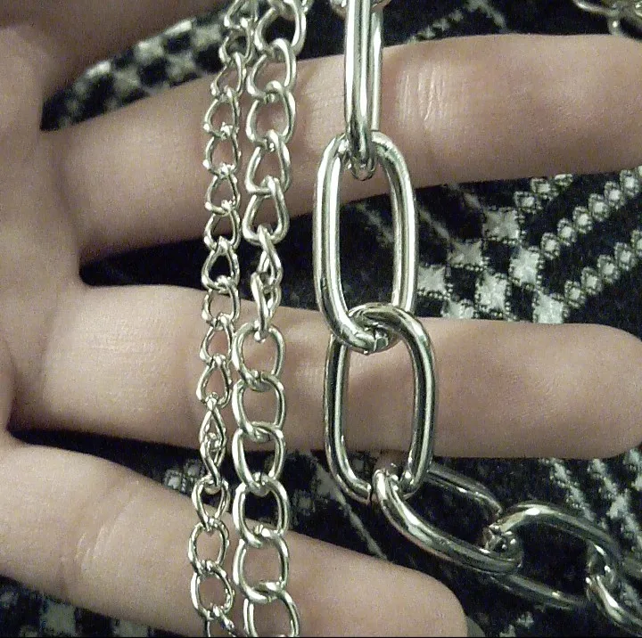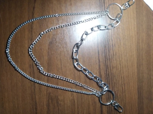 Дешевый металл, естественно, но друго и не ожидалось, так что супер. Выглядит круто и цепи реально разного размера, как я и хотела. Единственный минус - карабин, надеть его легко, а вот снять сложнее, так как его надо самостоятельно внутрь загибать