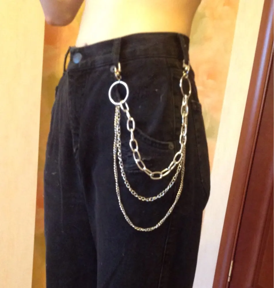 Ремень женский в стиле панк Штаны с цепочкой, с кисточками в стиле хип-хоп, для брюк, серебряная с золотом цепь, с металлическими цепочками на джинсы, 290