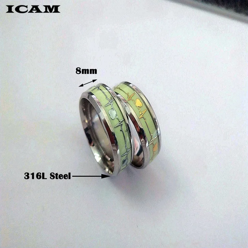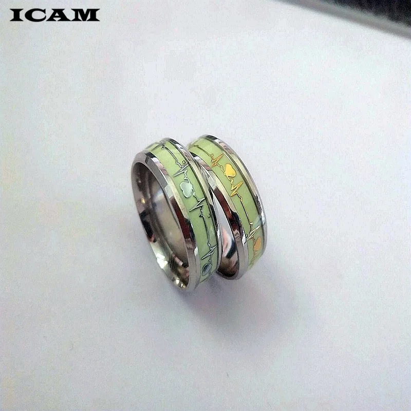 ICAM светящееся кольцо ecg кольцо из нержавеющей стали обещающее кольцо сердцебиение светящиеся украшения для мужчин и женщин