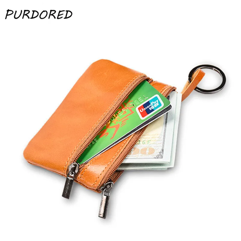 PURDORED 1 шт. мужской держатель для визиток из натуральной кожи, Однотонный женский держатель для кредитных карт, кошелек на молнии, кошелек для монет, брелок