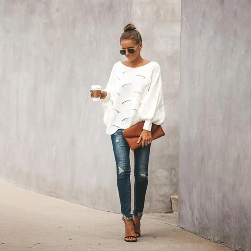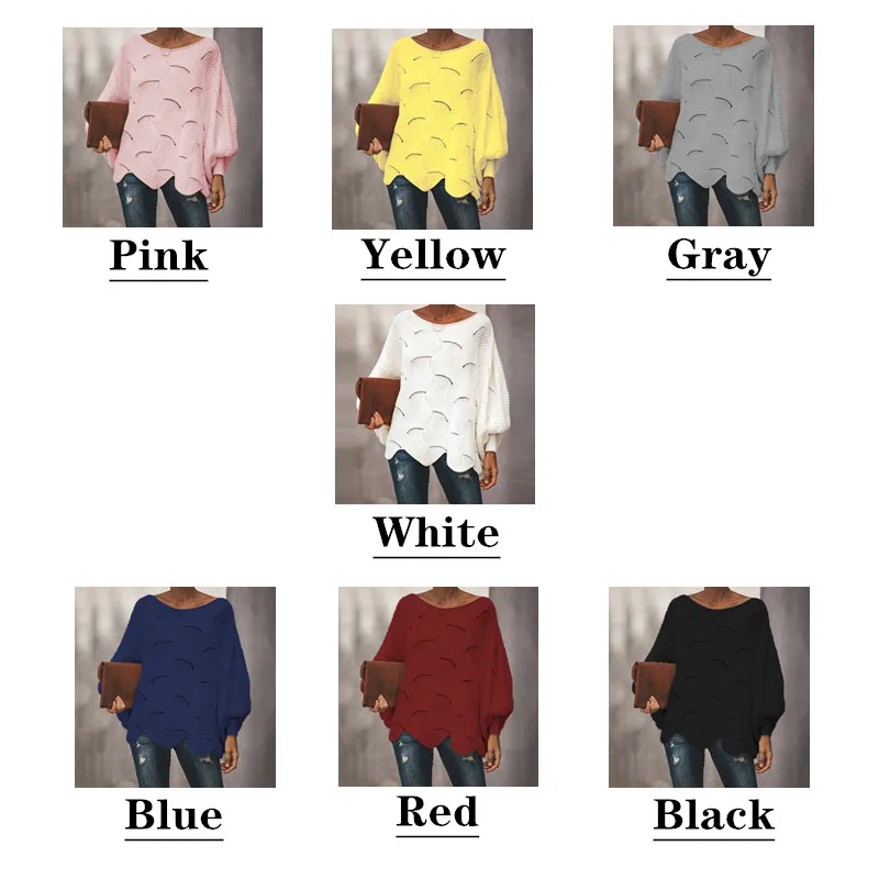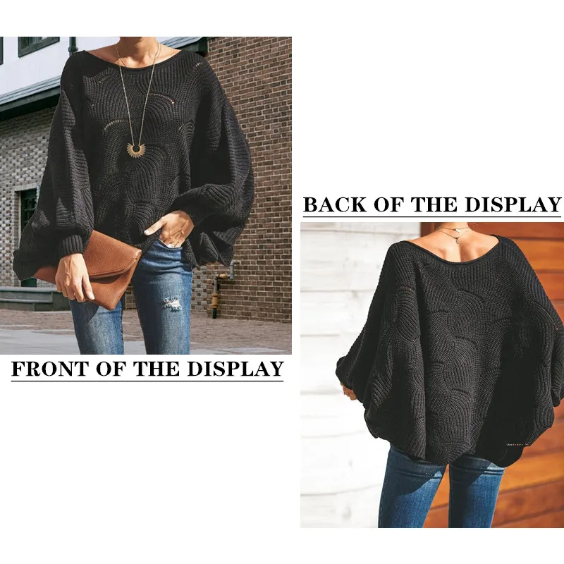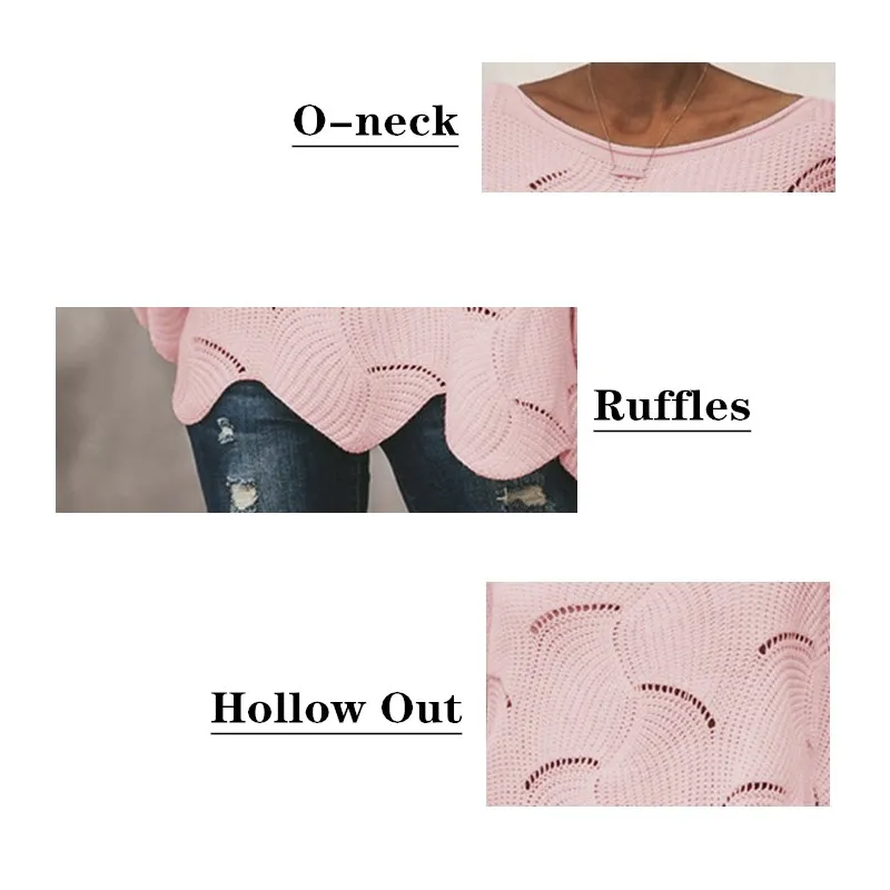 Женский вязаный свитер с оборками, свободный однотонный пуловер большого размера с рукавами-фонариками и круглым вырезом
