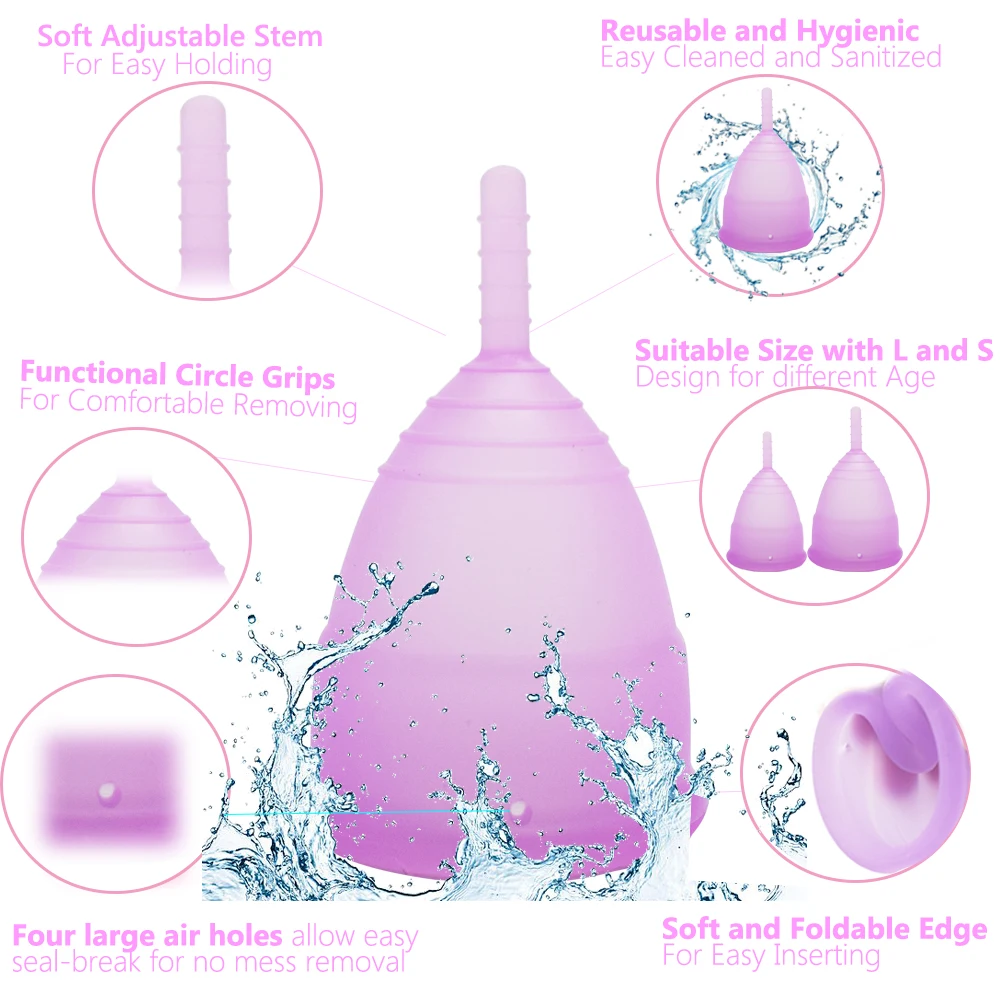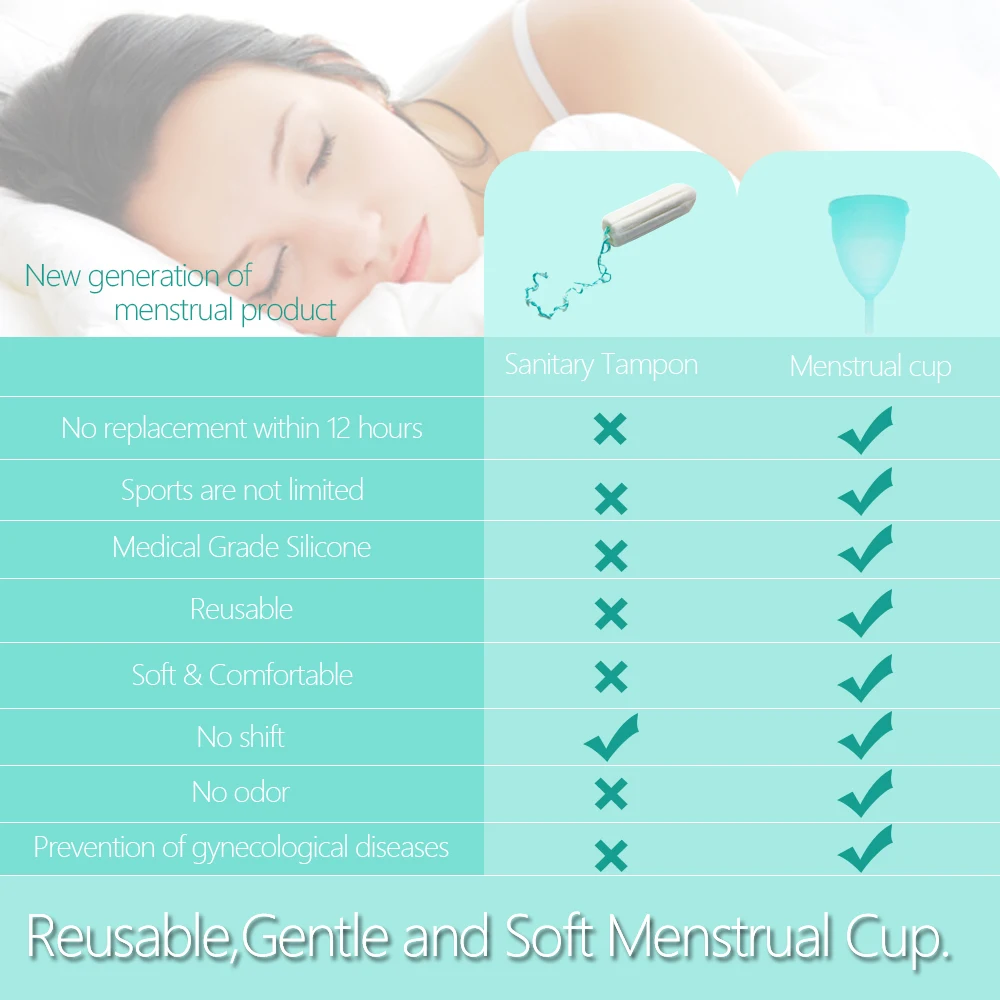 1. Конструкция с длинным стержнем позволяет легко снимать, захватывать и размещать. 2. В верхней части менструальной чаши Используется уникальная спиральная структура с тремя кольцами, чтобы предотвратить падение менструальной чаши во время использования. 3. Очень удобно, удобнее, чем с прокладками или тампонами. Внутри не ощущается абсолютно. Здорово, что вы даже можете плавать, спать, заниматься спортом. 4. Не скользит вбок, без запаха. 5. Менструальная чаша довольно эластичная, легкоСгибается и легко вставляется. 6. Здоровый, чистый и простой в использовании. Разработан для женщин любого размера, обеспечивая самую комфортную защиту до 12 часов за раз.