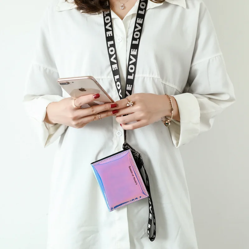 Кошелек женский, тонкий, с ремешком на руку, голографический, в Кор...