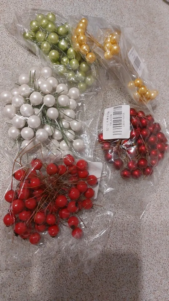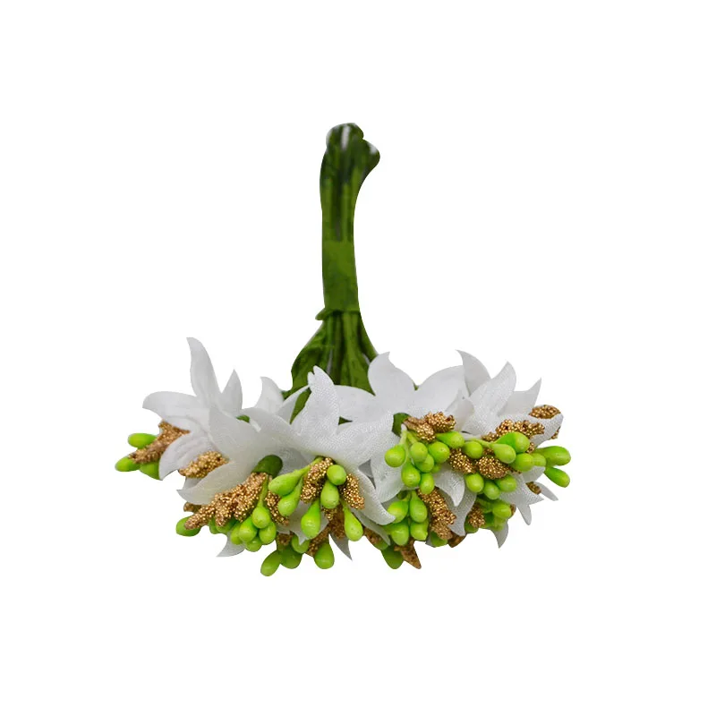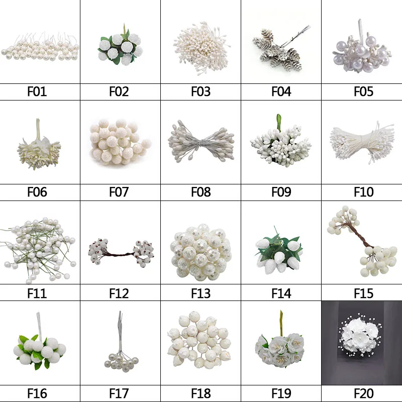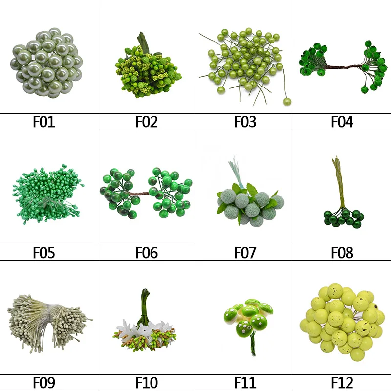 Зеленые, белые цветы, вишневые тычинки, ягоды, Набор для творчества, украшения для Рождества, свадьбы, дня рождения, рукоделия, венок, тычинки для цветов