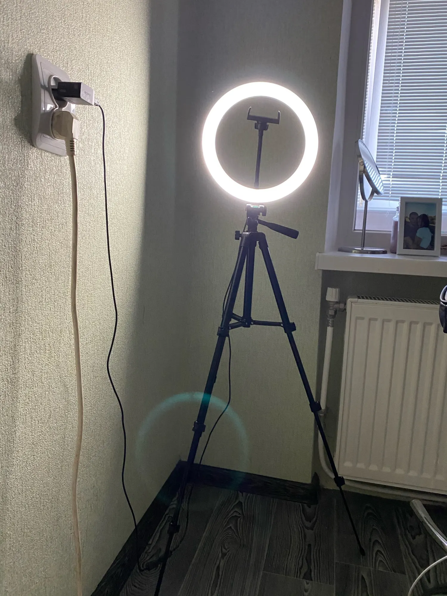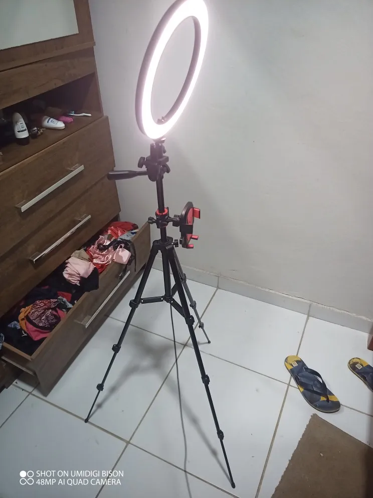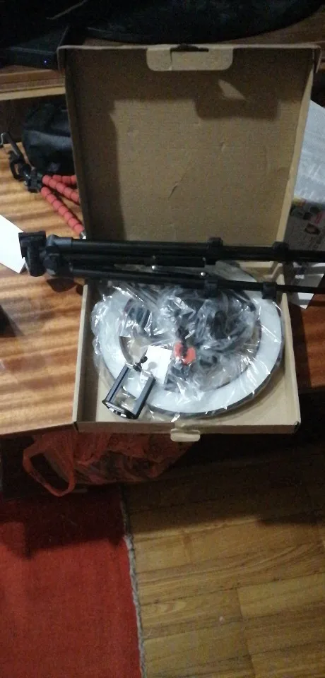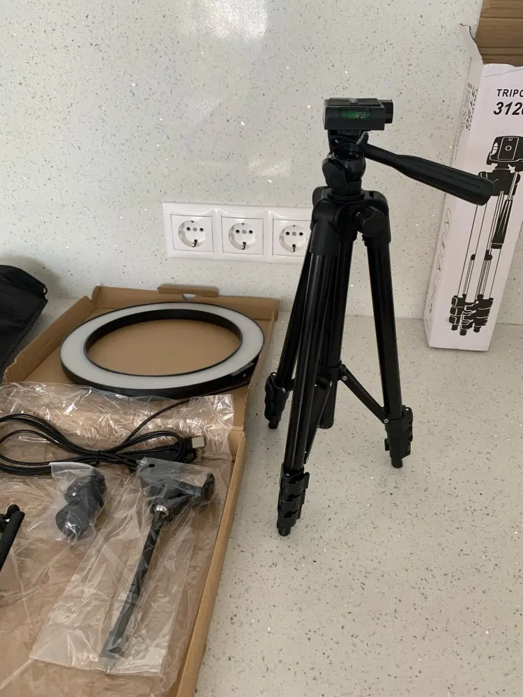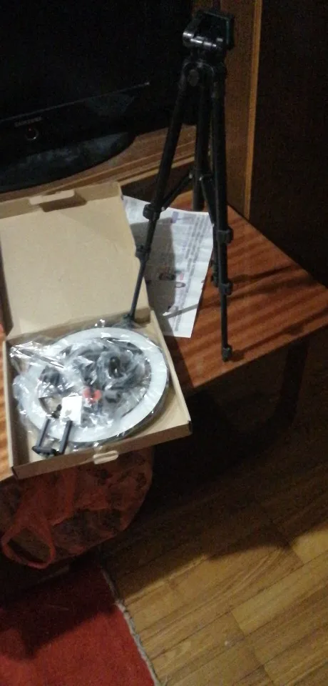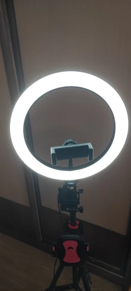 Ну так себе штатив, гнётся сам под собой, а повесив на него Honor 9x,ноги согнулись как у новорождённого телёнка))). Лампа ок, светит хорошо. Косяк в креплении, нет резьбы на фото видно. Дочке нравится и ладно. Пульт работает, да и не плохо бы инструкцию какую нибудь. Собрали по фото с али экспресс))). По России шло 20 дней