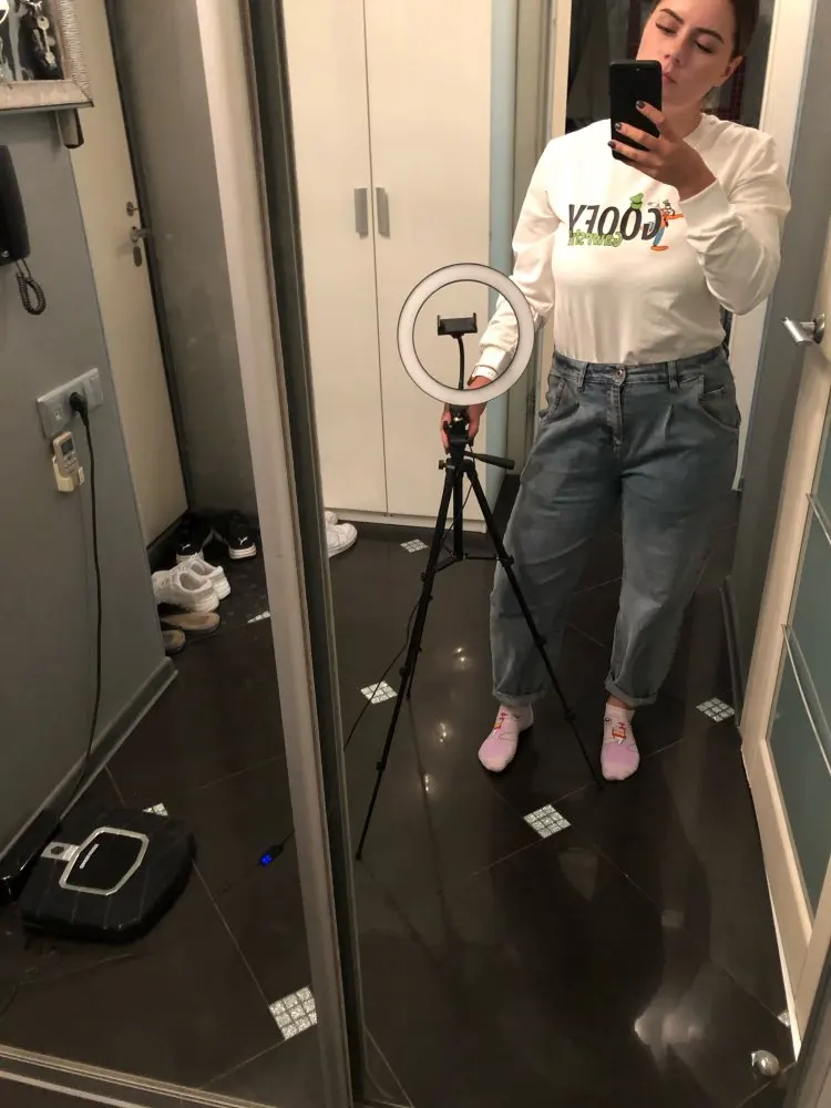 Дата заказа 11.11.2020 Дата получки 06.12.2020 Очень быстрая доставка, сервис действительно улучшается, очень рада. Лампа пришла в поврежденной упаковке, которая рассыпалась по всему пакету, а потом и по всему дому. Но сама лампа не повредилась как и всё присущее. Штатив хороший, лёгкий и держит телефон, хорошие крепления, без труда закрепляются и фиксируются. Сам штатив 120 см, маленький для стоячей съёмки не подойдёт, а со стулом как раз как и на с фотографиями. У лампы стандартные расцветки: холодная, тёплая и смешанная, все регулируются по степени яркости. Пульт для телефона пришёл без батарейки, поэтому заранее купите или вытяните из весов)) Он так же обнаруживается по блютузу, всё качественно. Советую