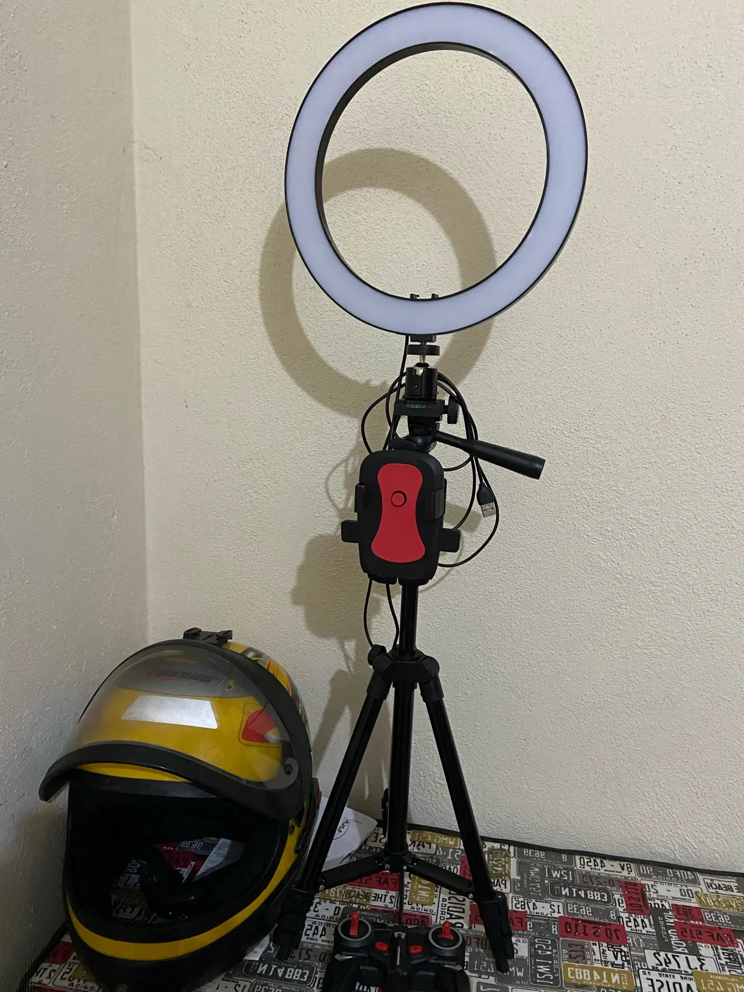 Всё не собрала, так как часть крепится на велик, а у меня его нет, и так как чукча не фотограф, разобраться, как с помощью кольца "сделать красиво" мне ещё предстоит. но надо сказать, за свою цену это отличный сет - и высота штатива сколько хочешь, и температура освещения, и яркость на максимуме аж слепит что твоя вспышка. Есть, где развернуться :)