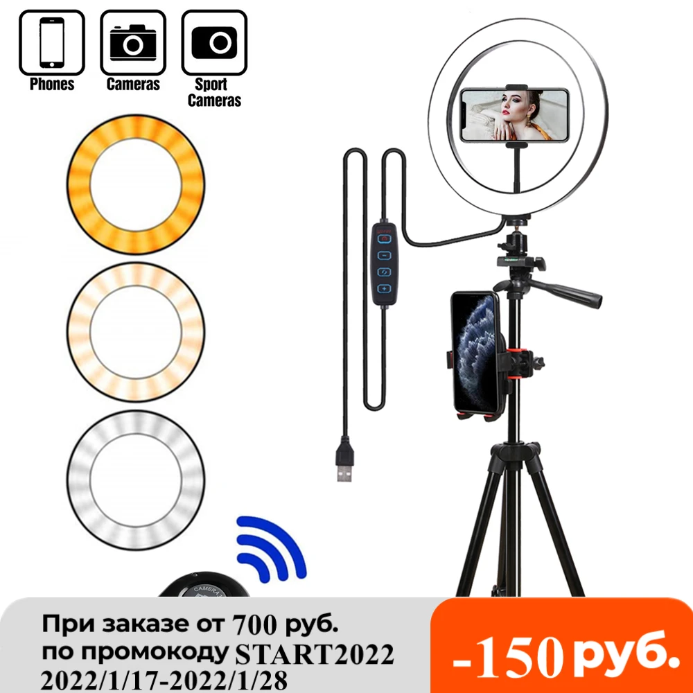 Кольцевая лампа для селфи, светодиодная кольцесветильник ПА с кольцо для штатива для селфи, телефона, видео, фотосъемки, для держателя телефона Youtube