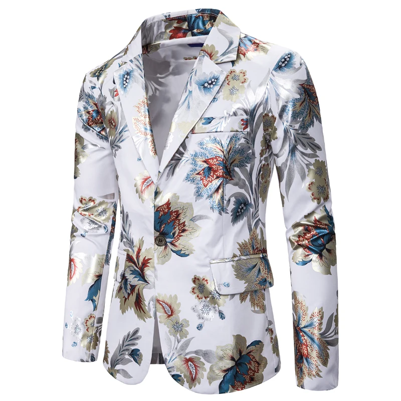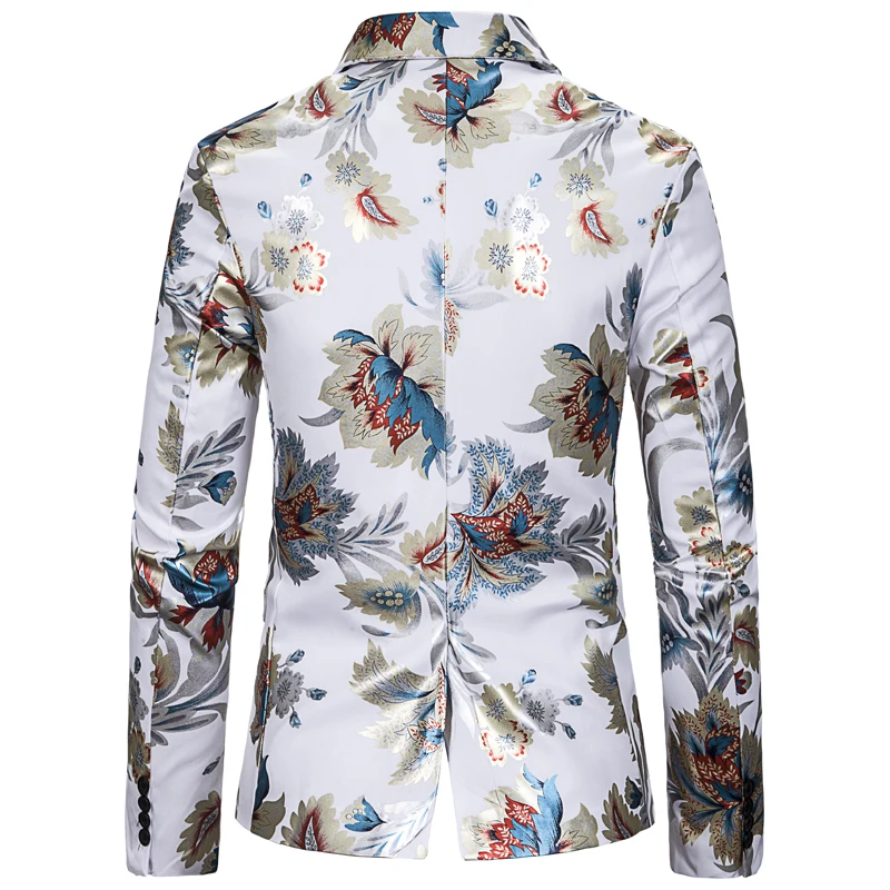Блейзер Мужской с цветочным принтом, Роскошный деловой приталенный пиджак на одной пуговице для свадьбы, вечеринки, белый черный темно-синий