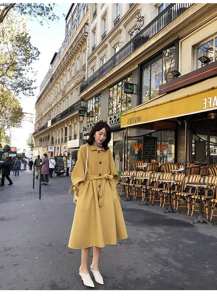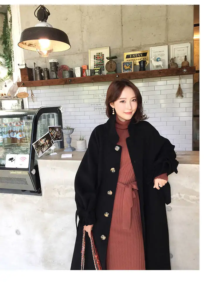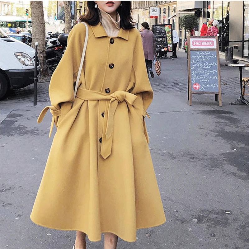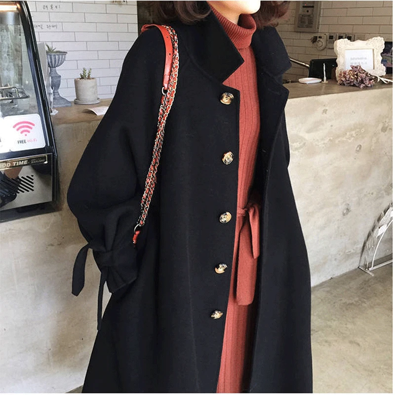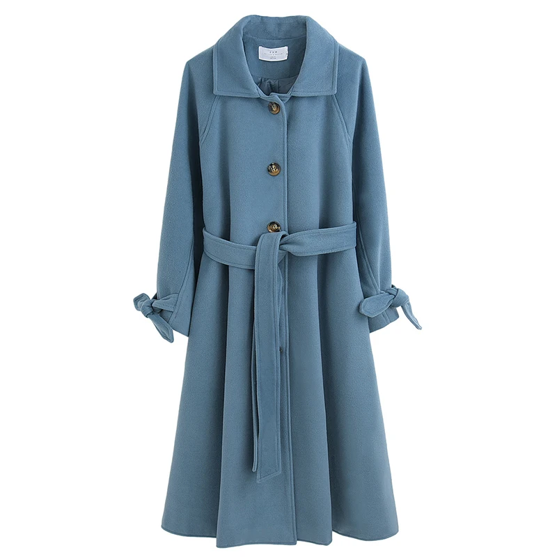 Женское пальто Bella Philosophy, Однотонное шерстяное пальто с отложным воротником, с поясом, с рукавами-фонариками, для осени, 2021