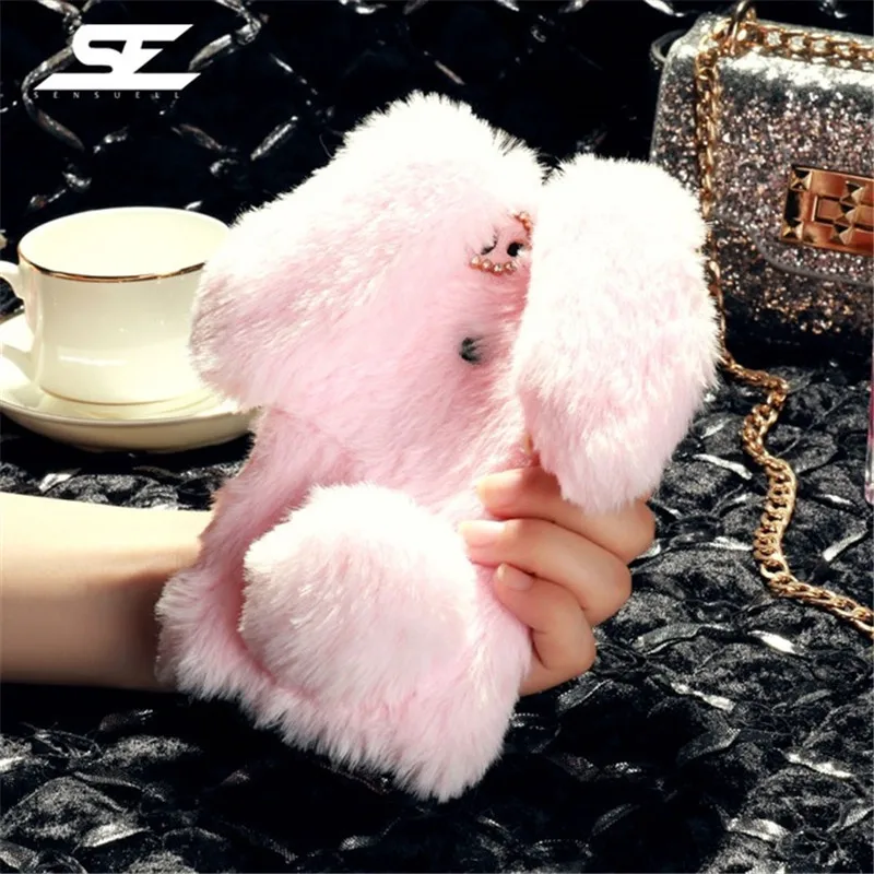 Feature3D Rabbit Fur Girly Favourite Gifted Present Phone Shell Capa Capinhas