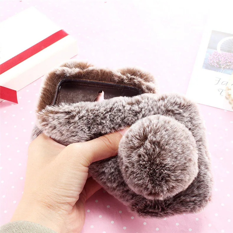 Для iPhone 7 8 Xr чехол для телефона 3D милый кролик теплый мех чех...