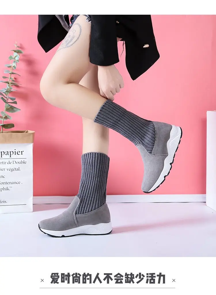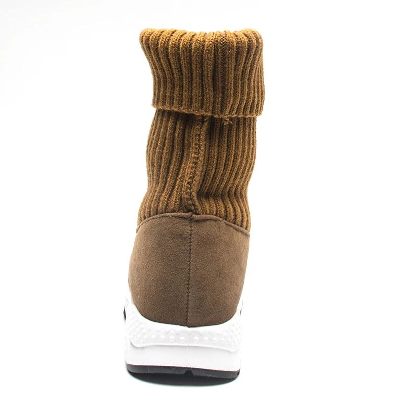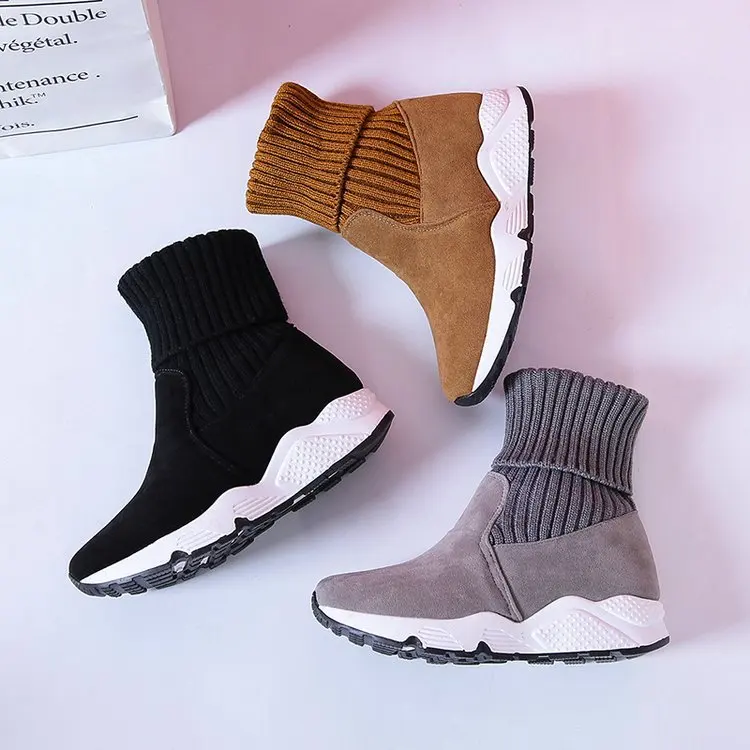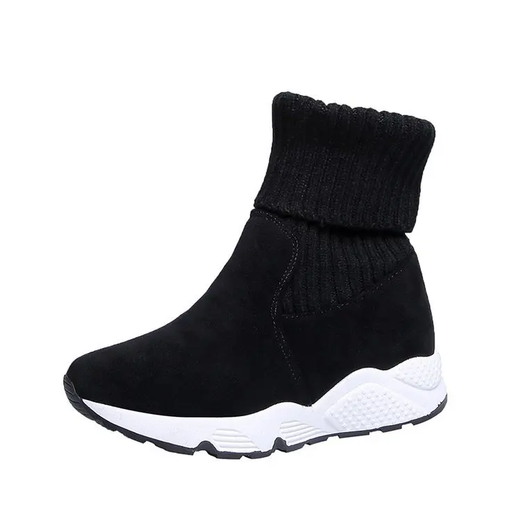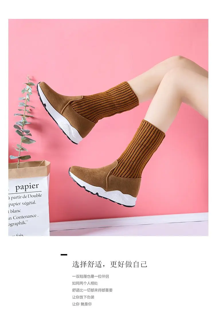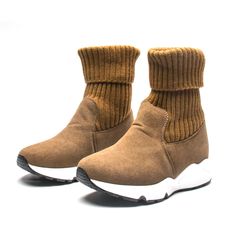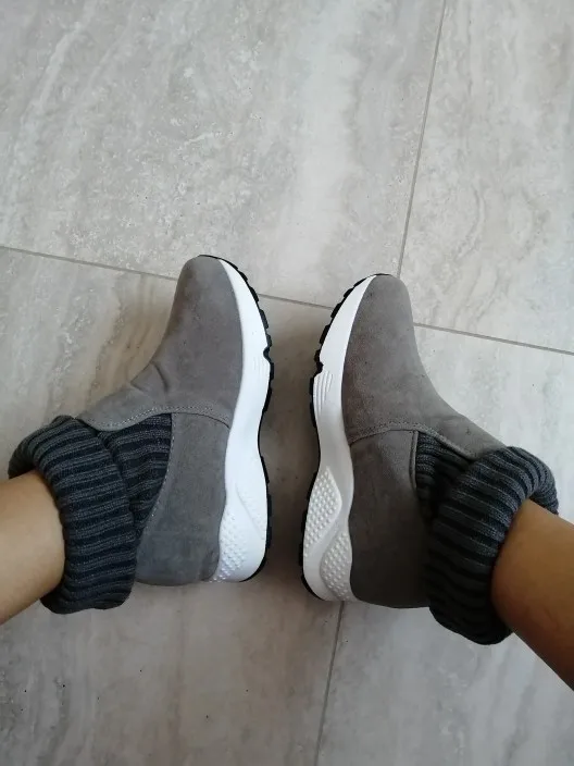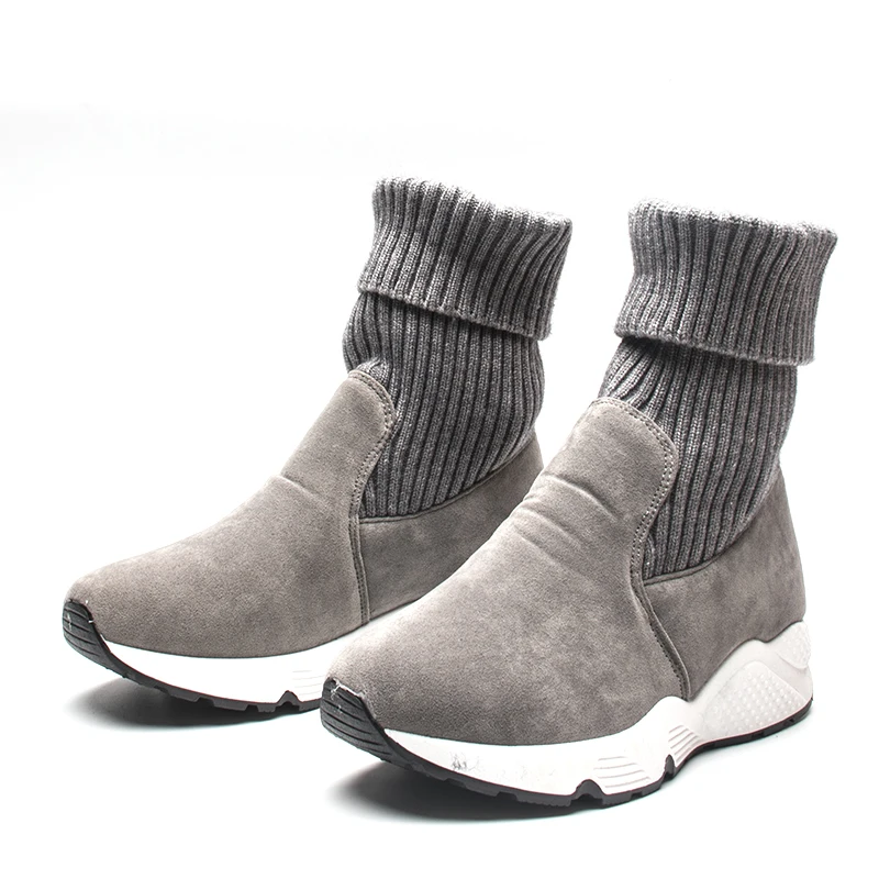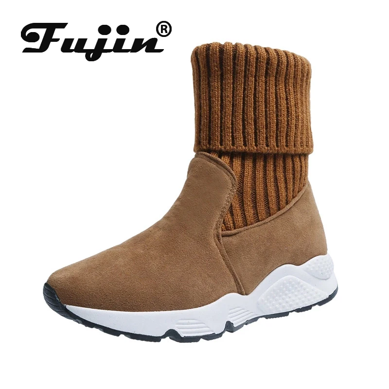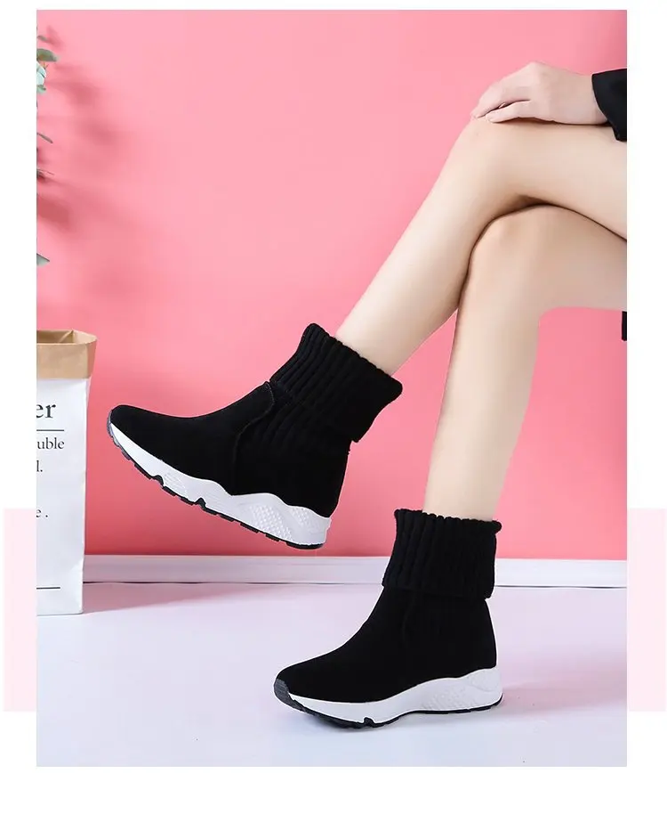 Fujinженские зимние ботинки; Вязаные ботинки из флока на платформе с Плюшевым Мехом; Замшевые теплые ботинки; Женские зимние ботинки; Зимние кроссовки
