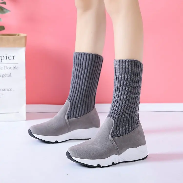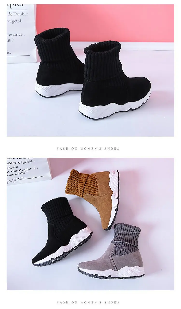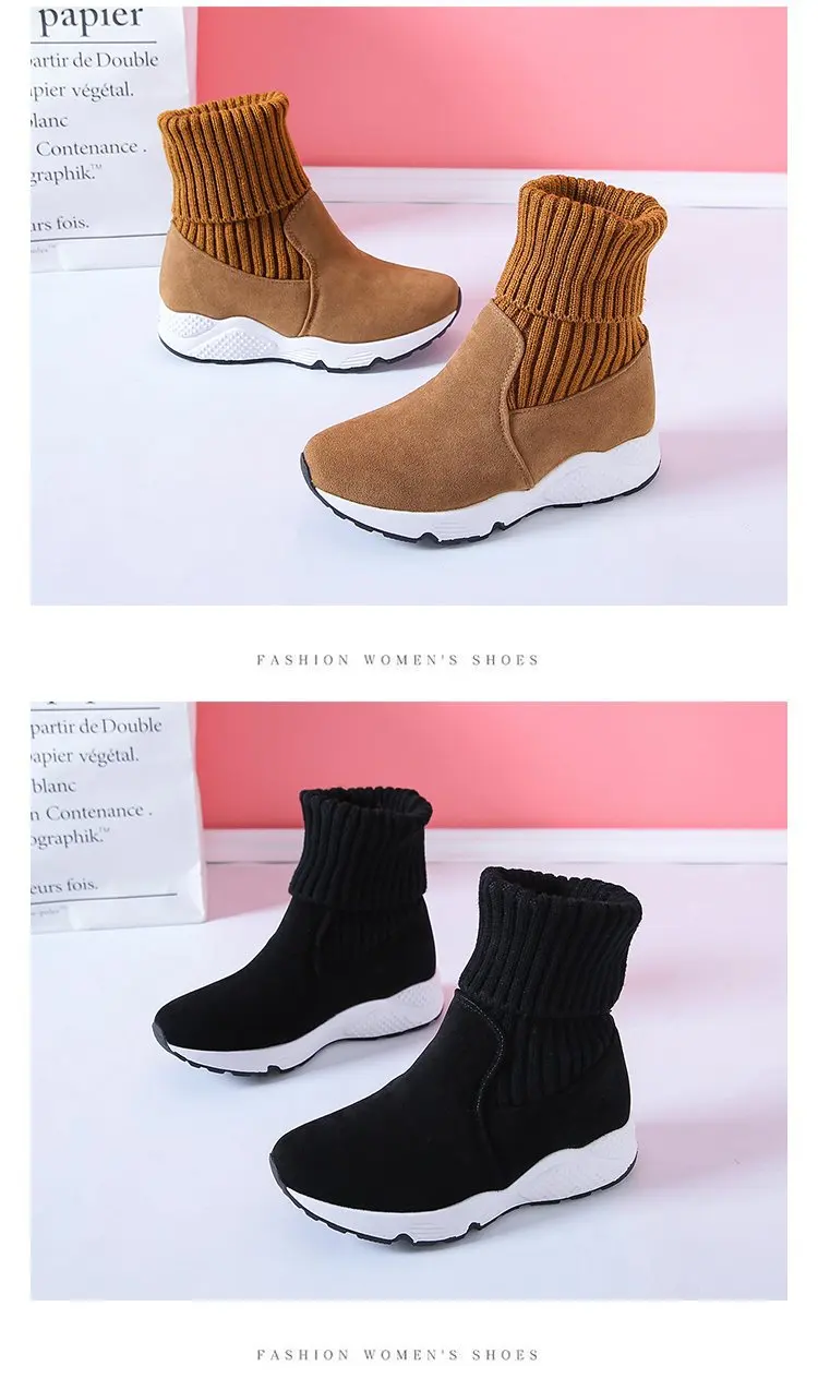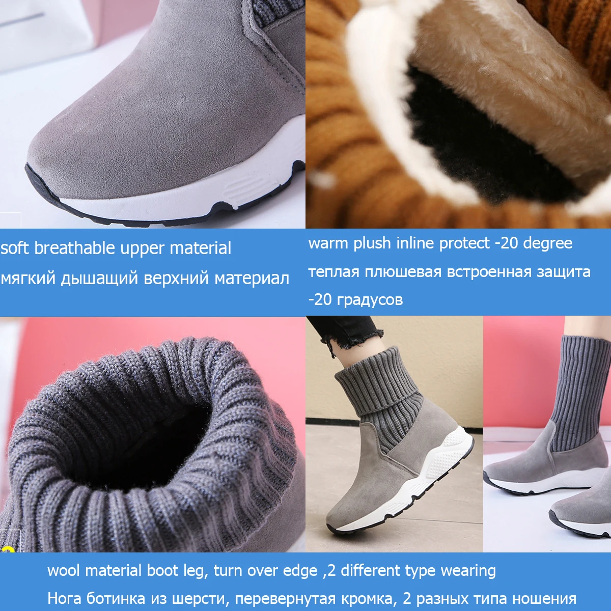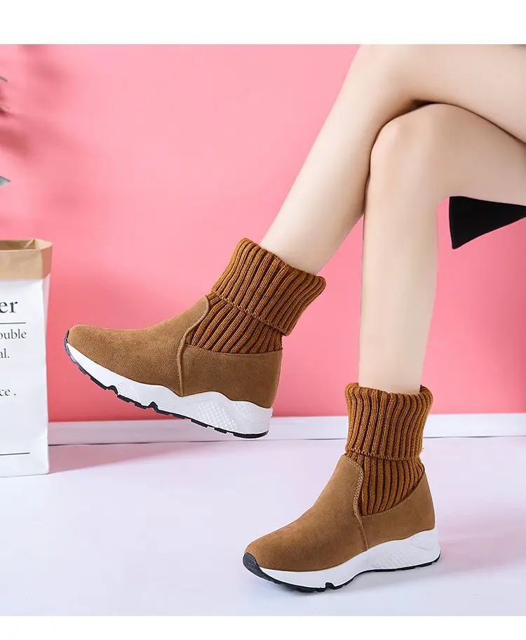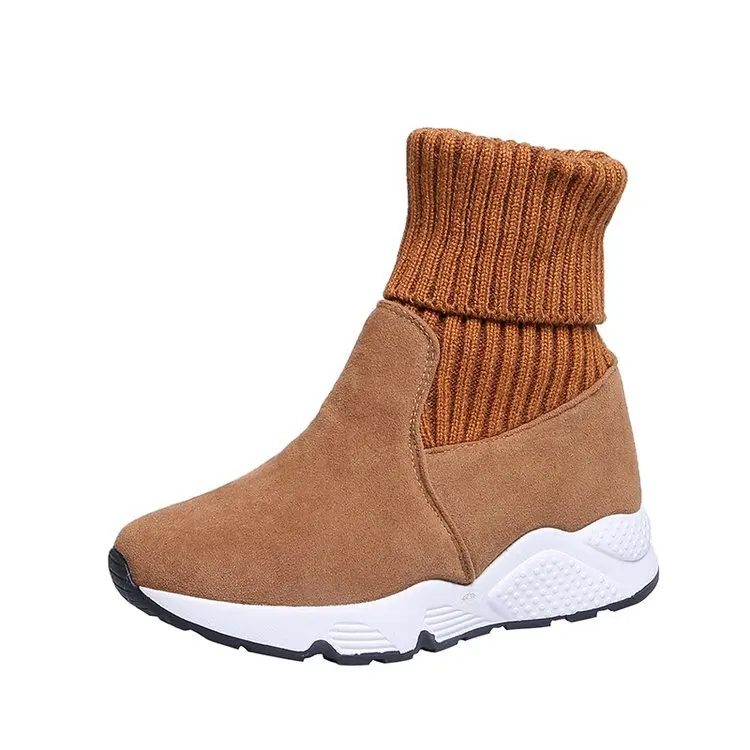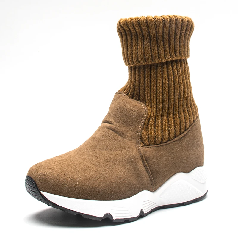 Fujinженские зимние ботинки; Вязаные ботинки из флока на платформе с Плюшевым Мехом; Замшевые теплые ботинки; Женские зимние ботинки; Зимние кроссовки