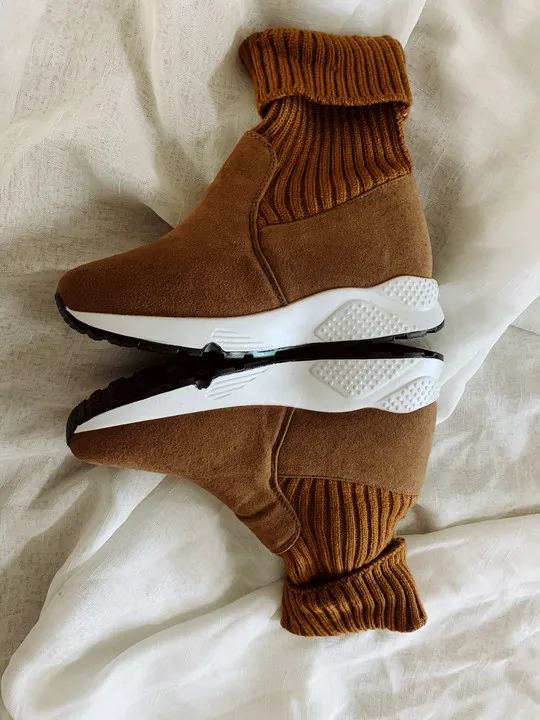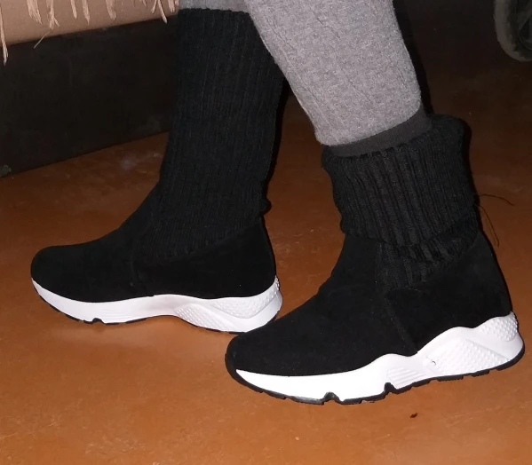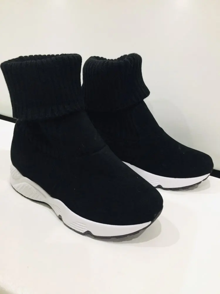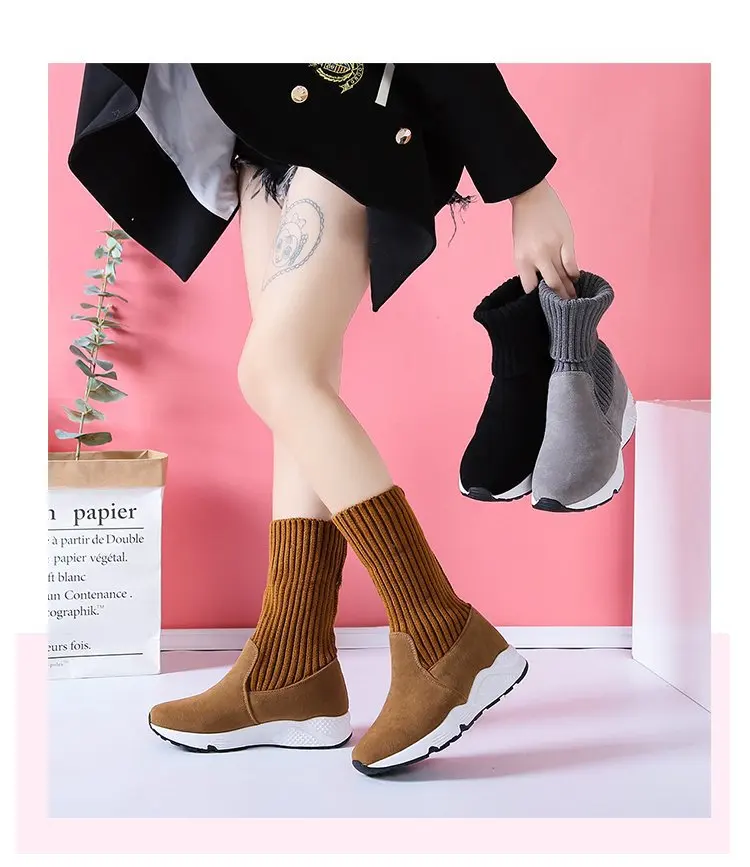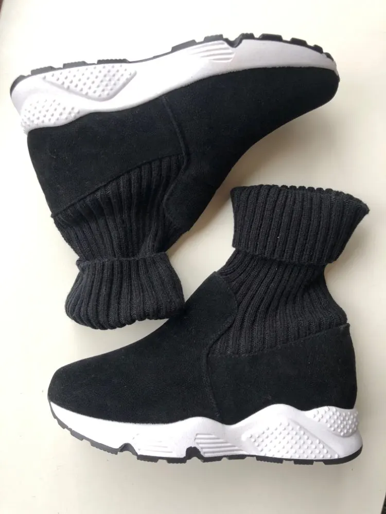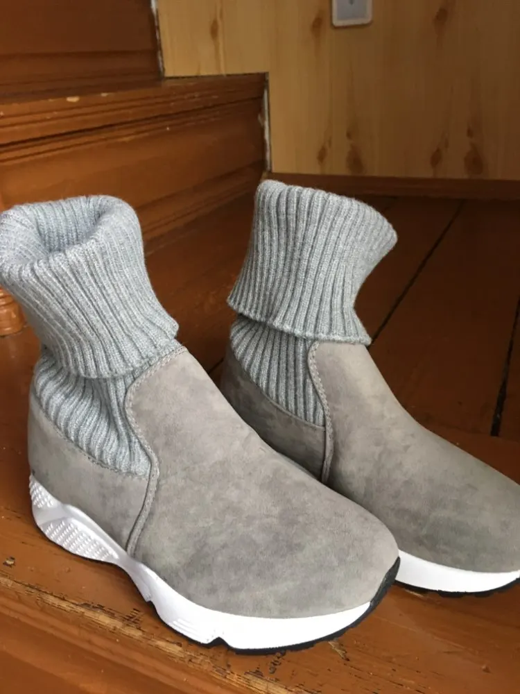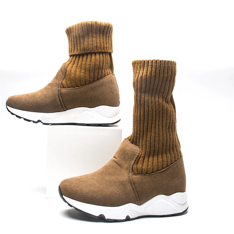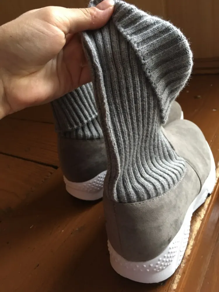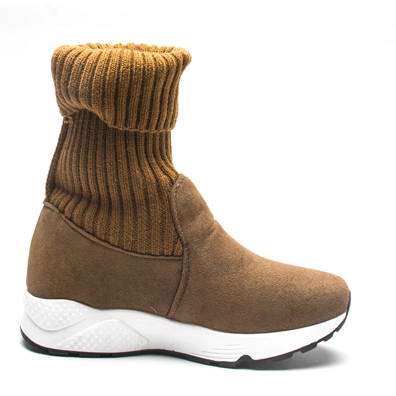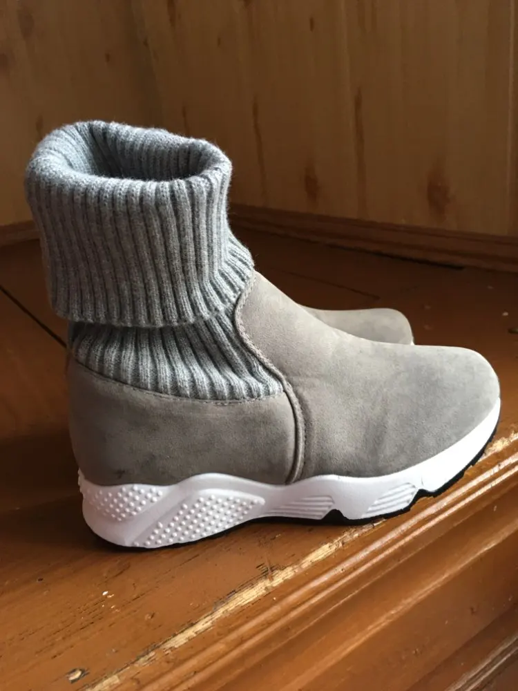 Fujinженские зимние ботинки; Вязаные ботинки из флока на платформе с Плюшевым Мехом; Замшевые теплые ботинки; Женские зимние ботинки; Зимние кроссовки