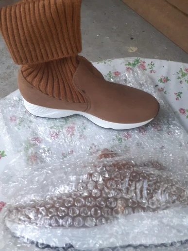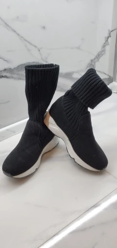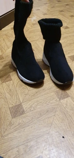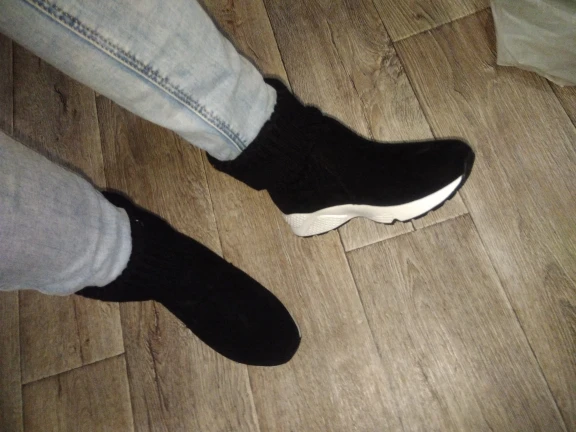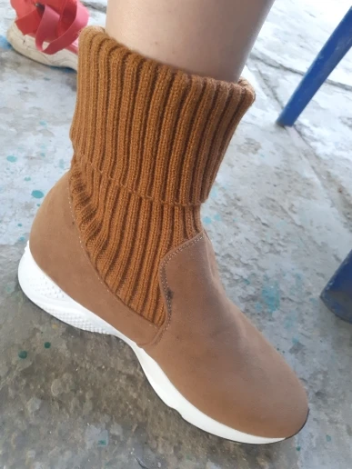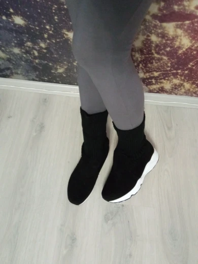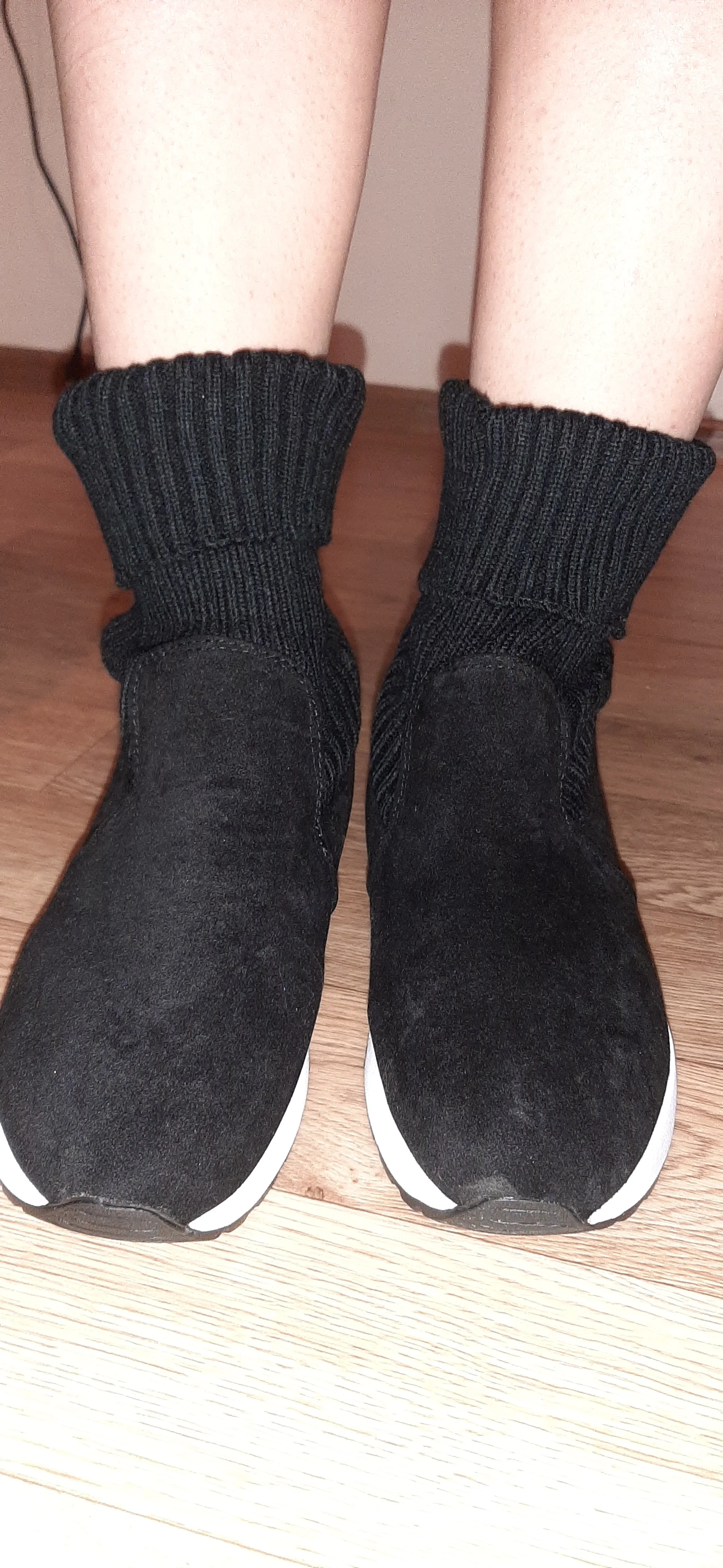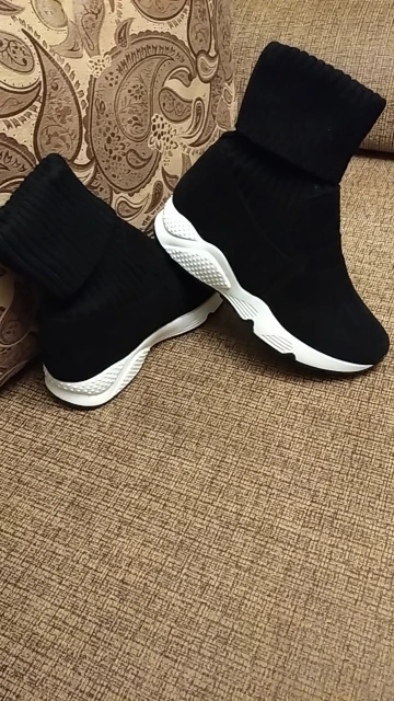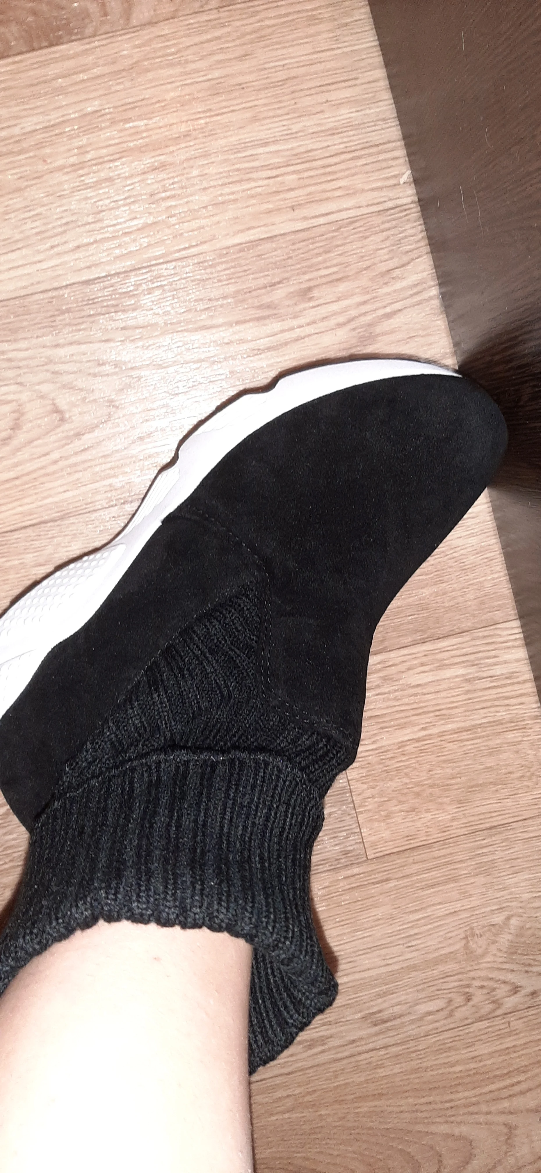 Удобные ботинки, которые оформлены как будто с носком, вязанный верх можно приспустить, закатить, или распрямить. Заказала размер 7 на стопу 23,5 см Сели точно по размеру. Для широкой ноги подошли отлично. Доставка быстрая с отслеживанием.