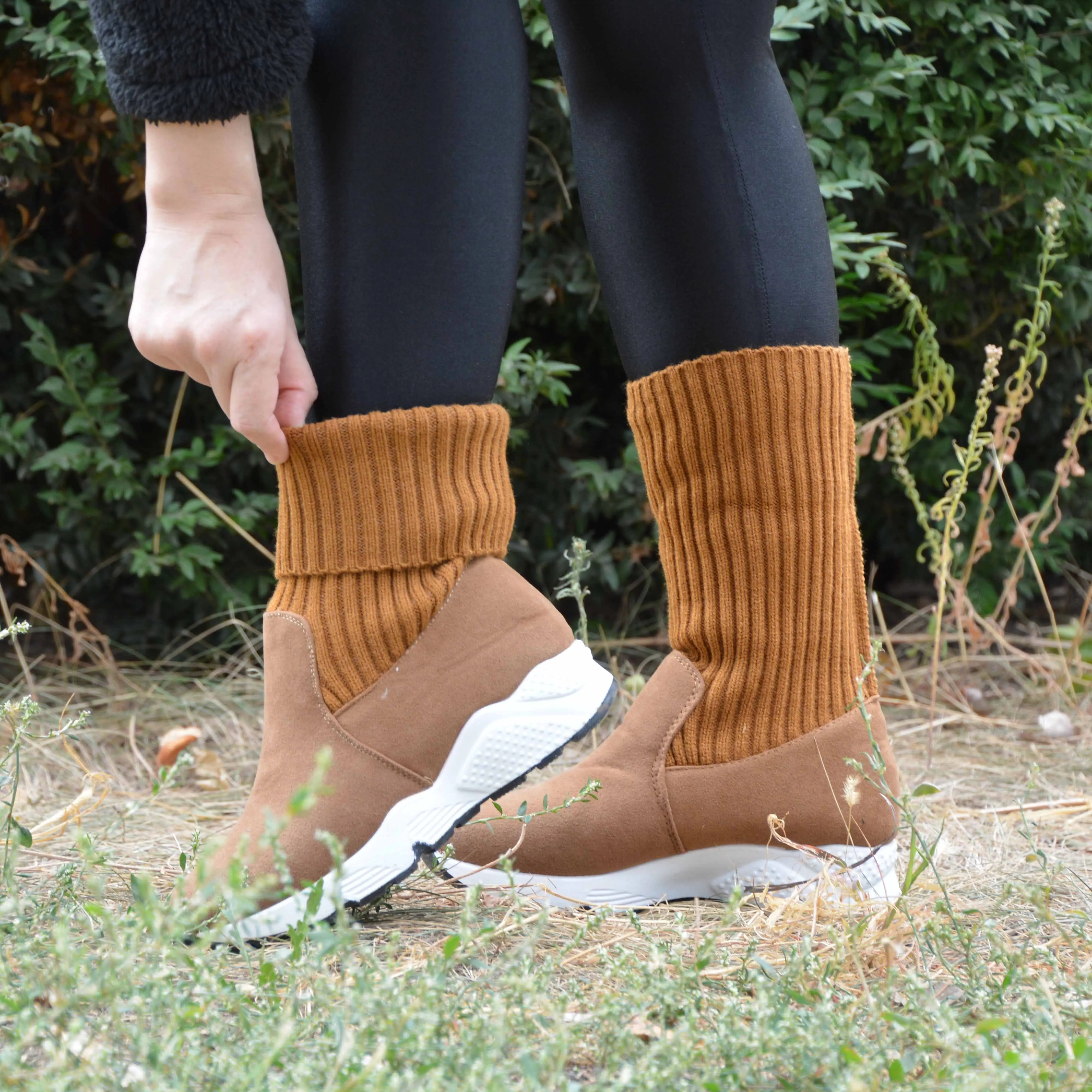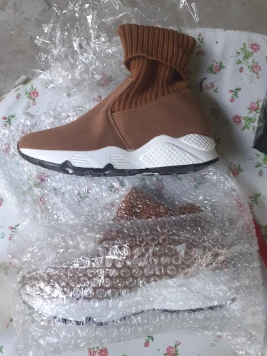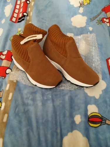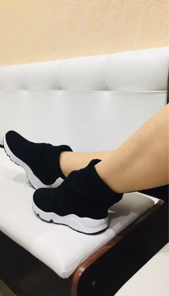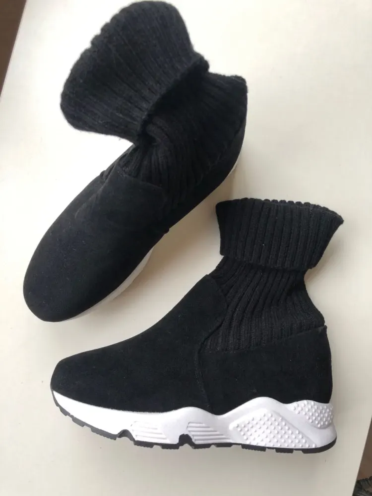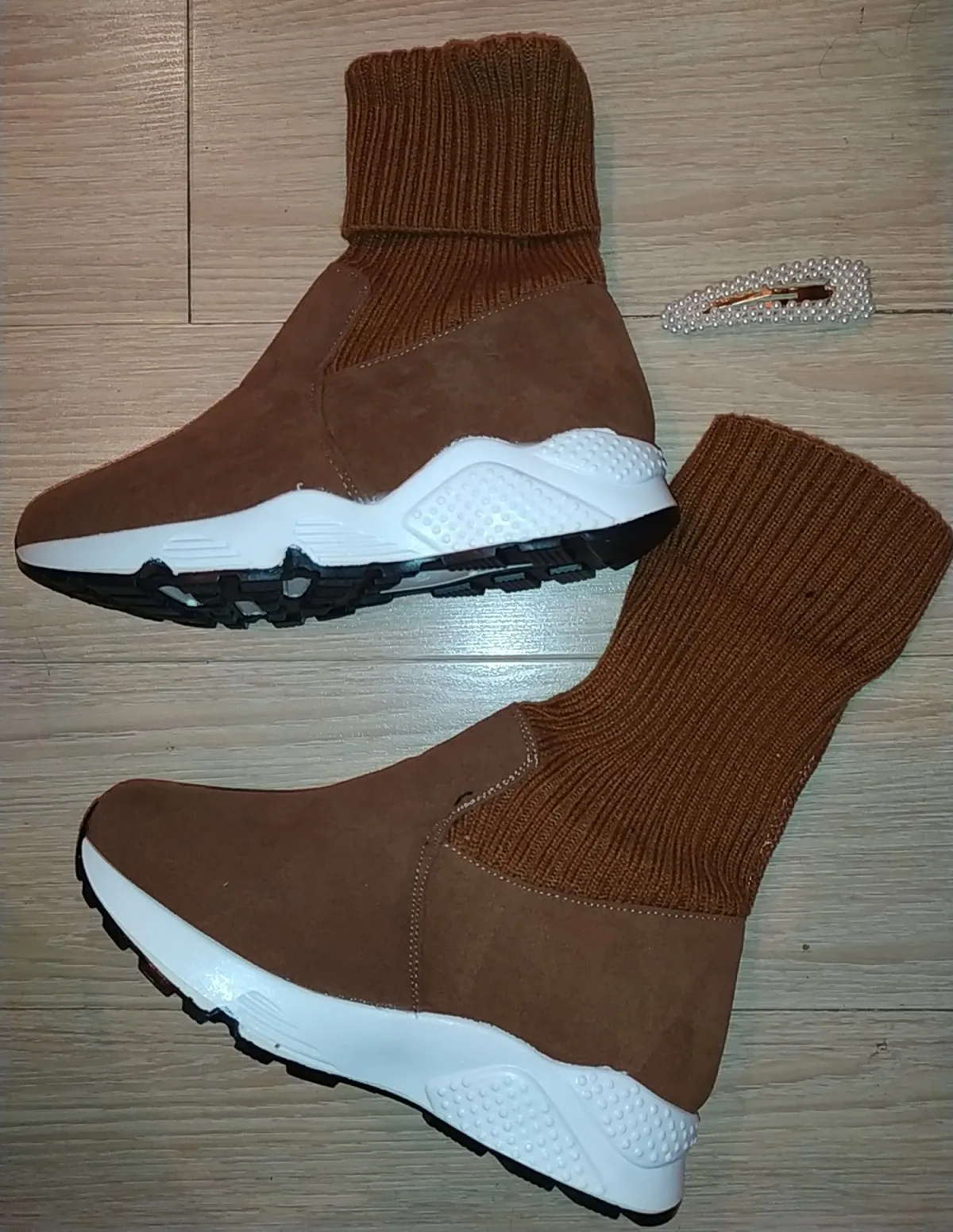 Удобные ботинки, которые оформлены как будто с носком, вязанный верх можно приспустить, закатить, или распрямить. Заказала размер 7 на стопу 23,5 см Сели точно по размеру. Для широкой ноги подошли отлично. Доставка быстрая с отслеживанием.