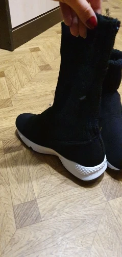 ну что сказать про обувь, конечно красивая и хорошая, но на левом ботинке на носике есть и виден клей, но когда на ноге ботинок клея не видно. правый ботинок почему-то меньше чем правый, хотя размер один, надеюсь мех примнётся. у меня ного 24,5см заказала 8,5 размер, нужно было на размер больше брать, так как тут только копроновый носок подойдёт только.... всегда заказываю по таблице размеров и всегда всё было чётко, а тут таблица немного не верна.