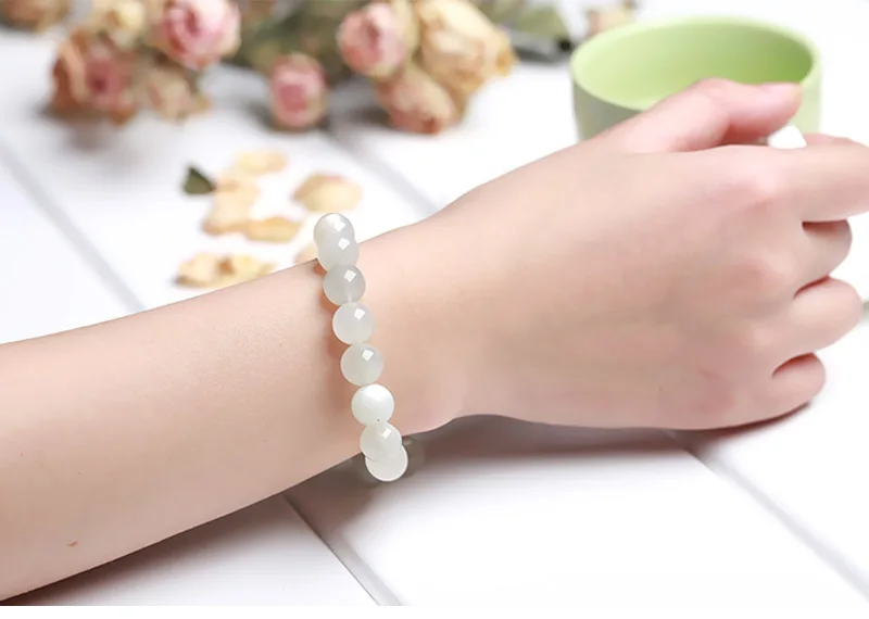 JD Новое поступление, круглый белый лунный камень, бусины из натурального камня, ювелирные изделия, аксессуары для мужчин и женщин, браслет для медитации, ювелирные изделия для йоги