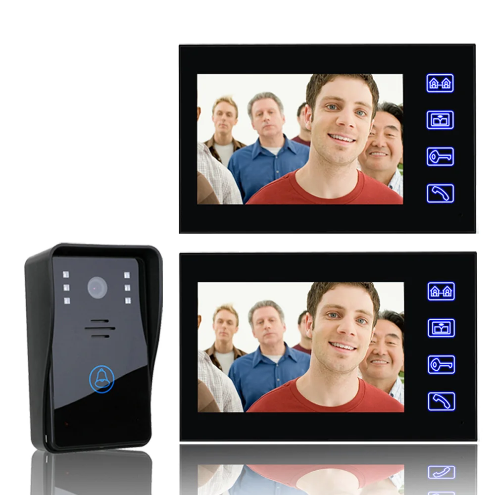 7 "видеодомофон дверной звонок с 1 шт. 1000TVL наружная камера видеонаблюдения + 2 шт. внутренние мониторы Домашняя безопасность