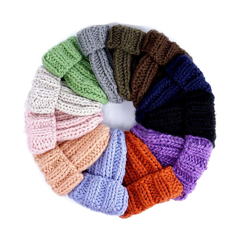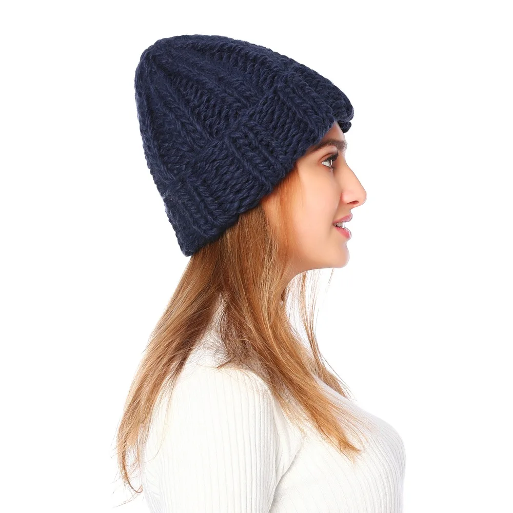 Зимняя теплая вязаная шапка ручной работы крупная Толстая вязаная ш...