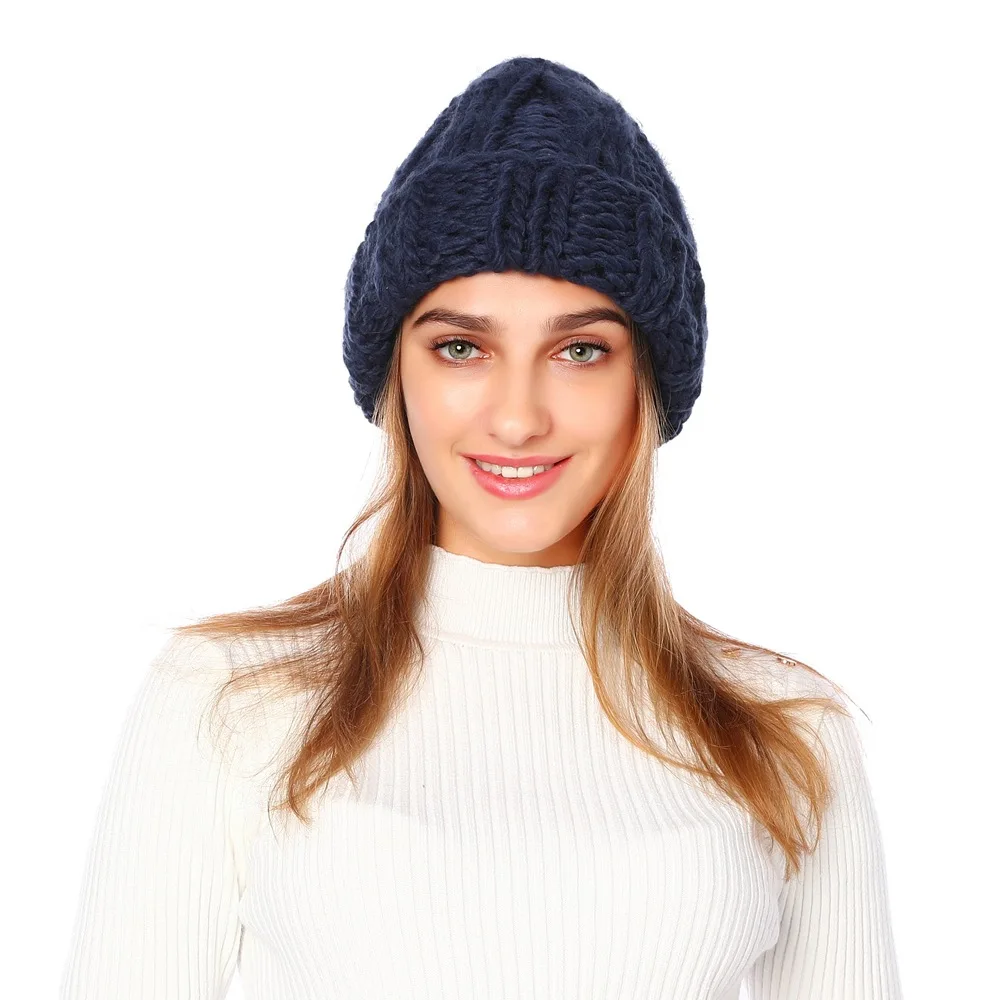 Женская зимняя вязаная шапка, плотная мягкая теплая крупная вязаная...