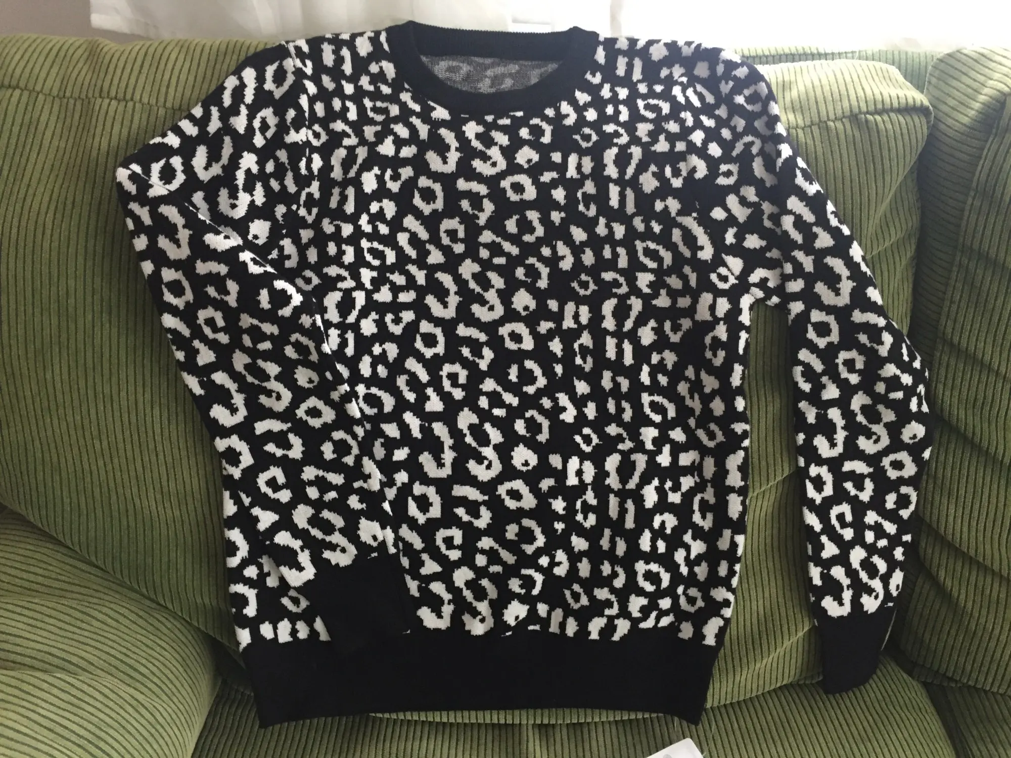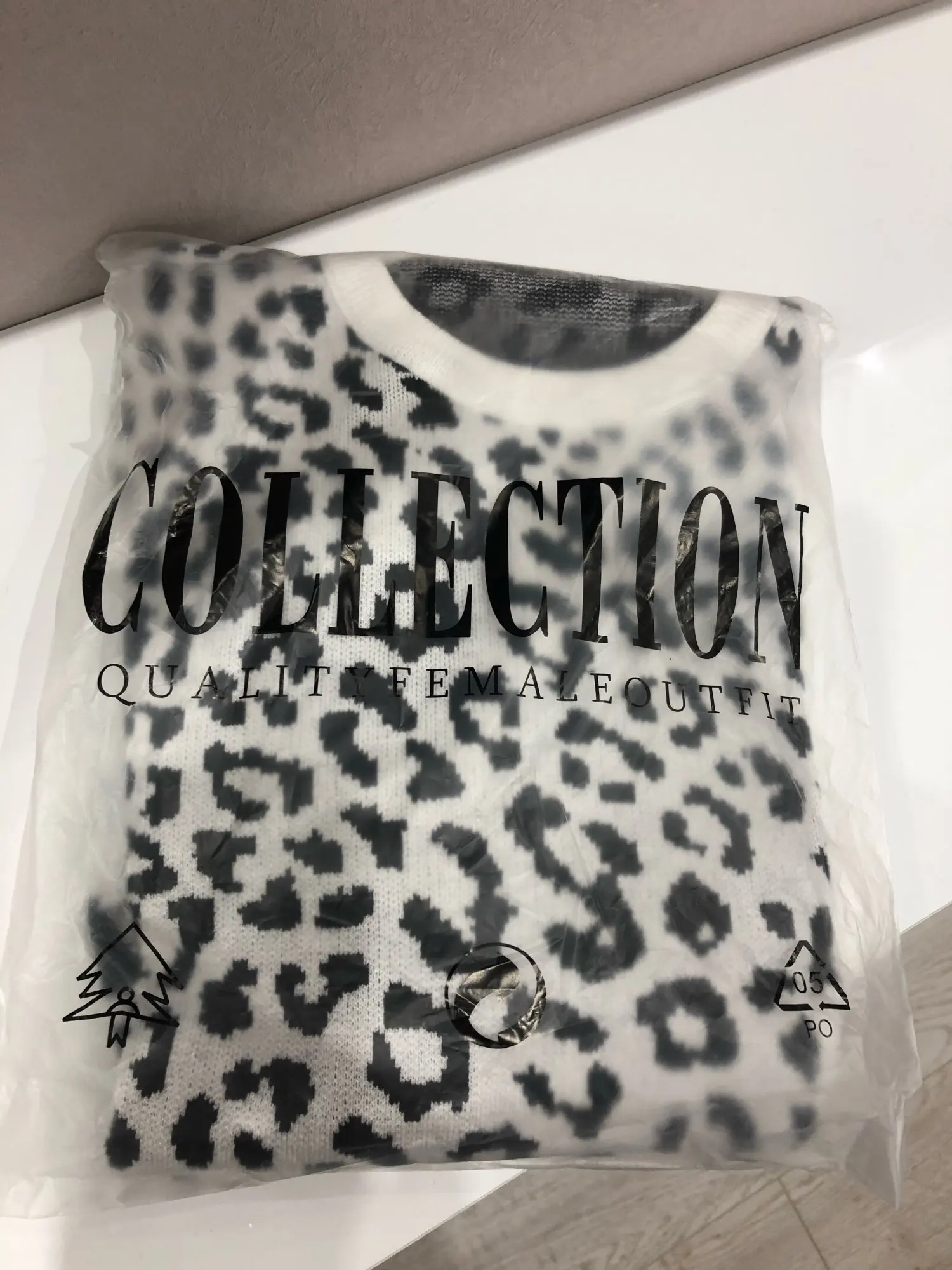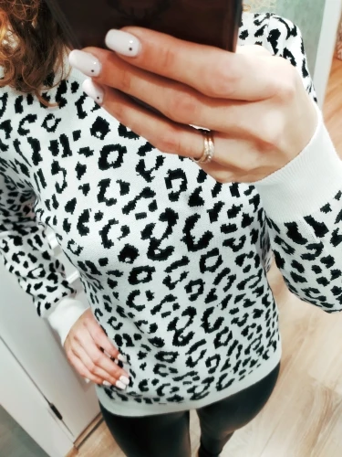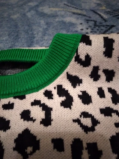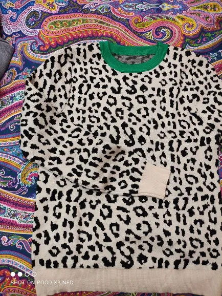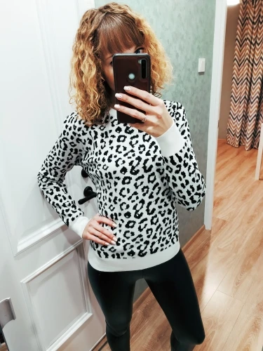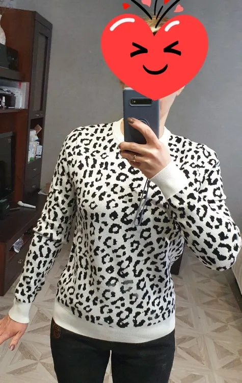 Джемпер женский, шерстяной, оверсайз, с леопардовым принтом, жаккардовый, Осень-зима, 2021