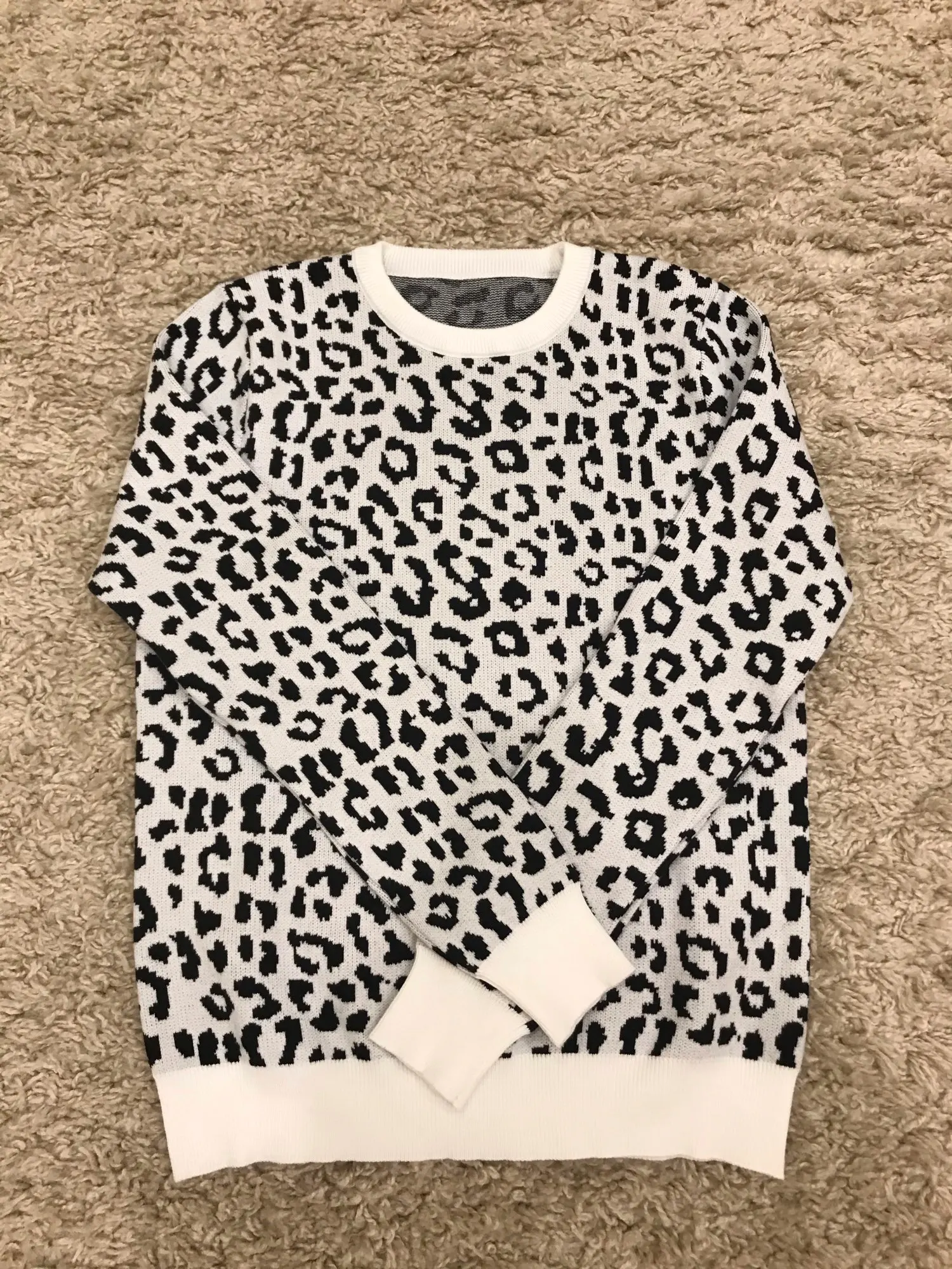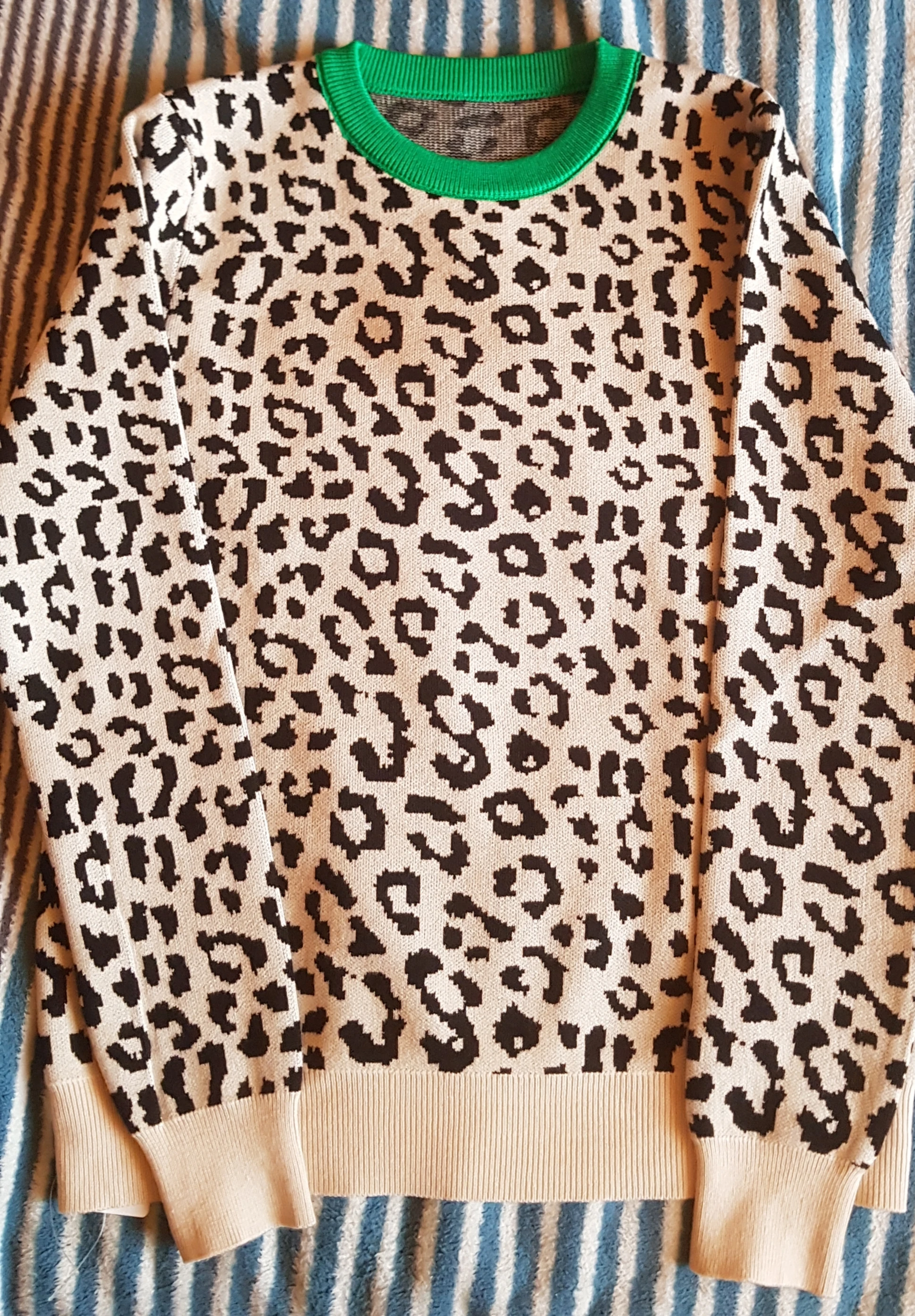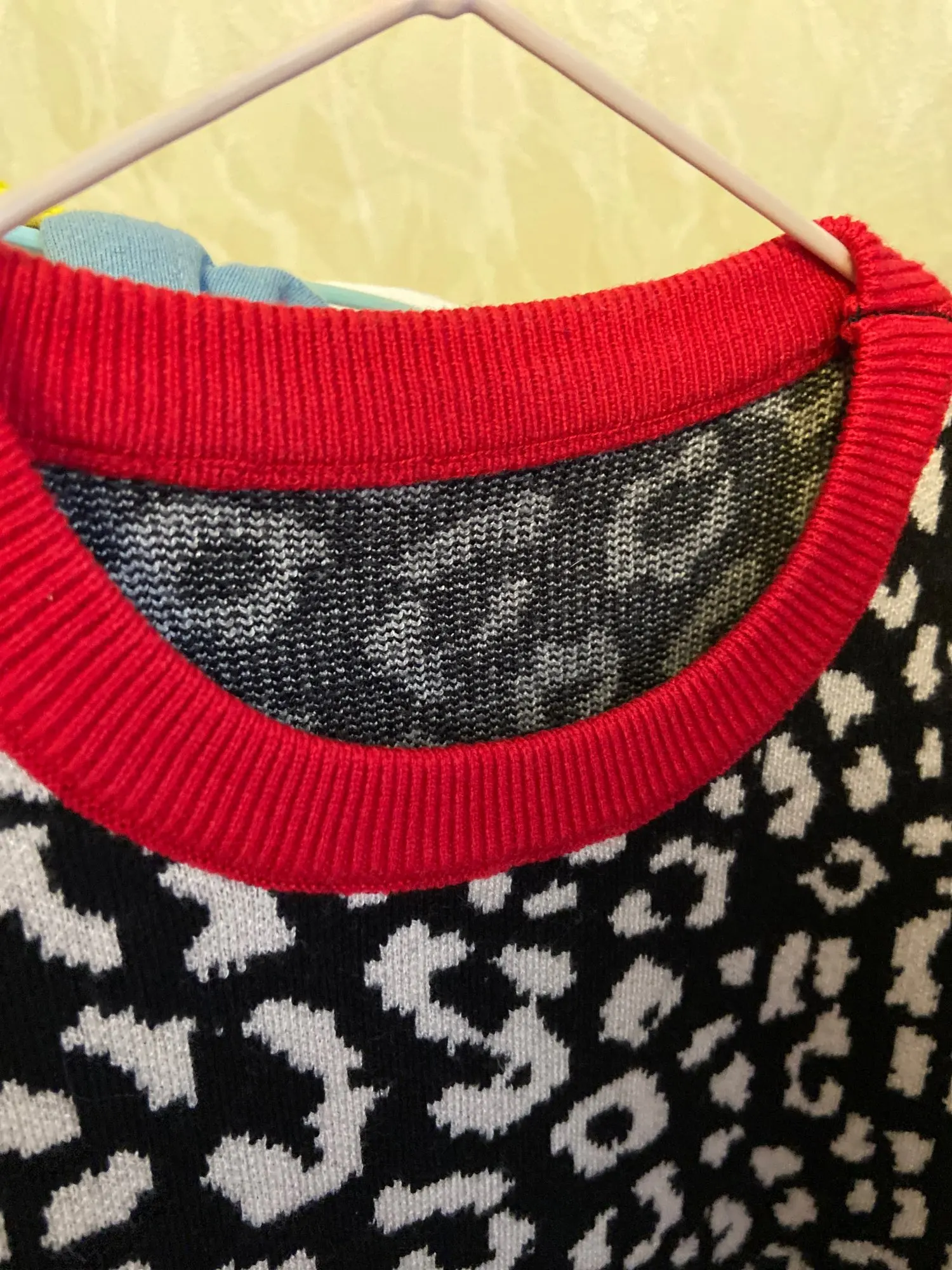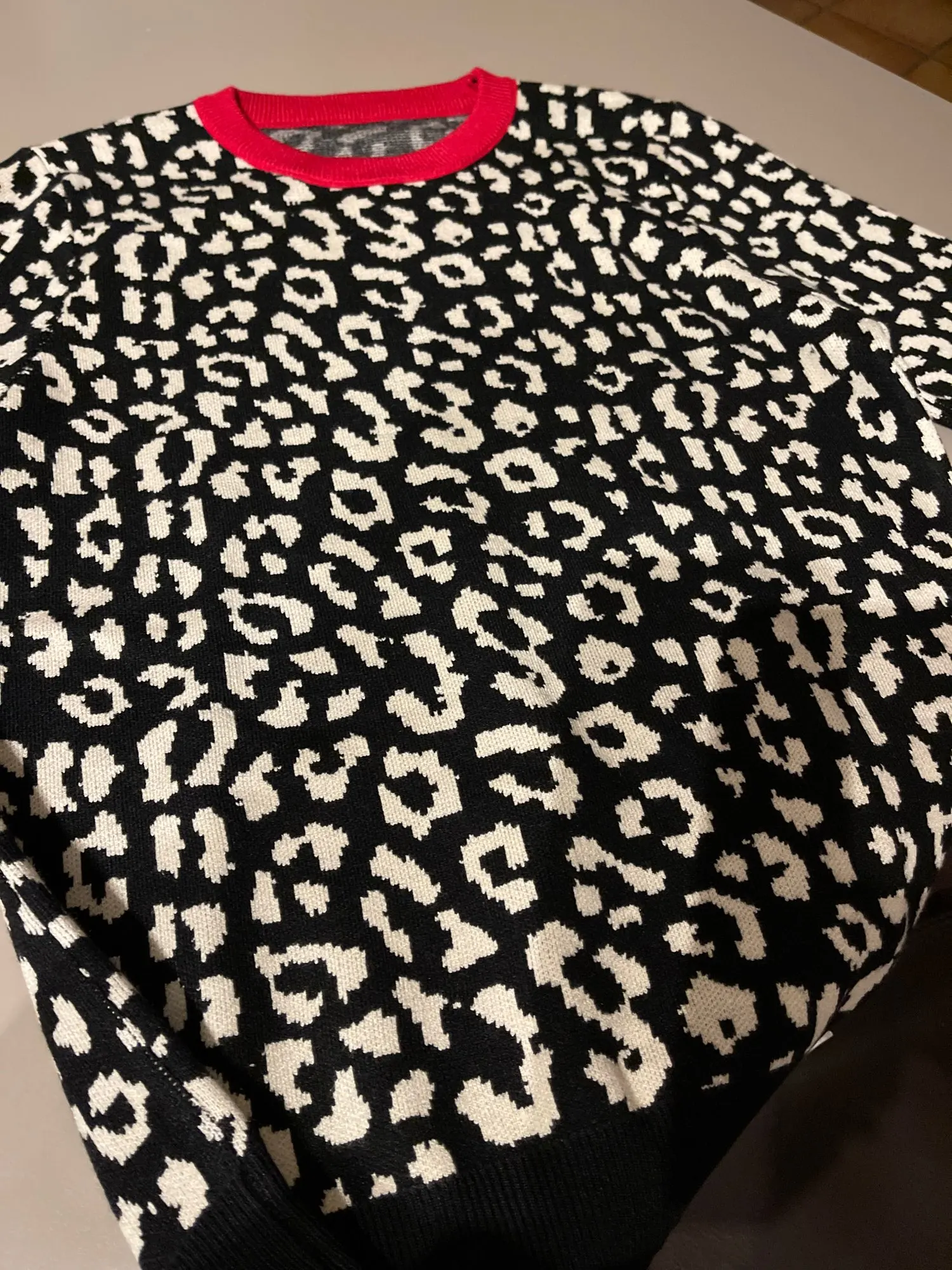 Джемпер женский, шерстяной, оверсайз, с леопардовым принтом, жаккардовый, Осень-зима, 2021