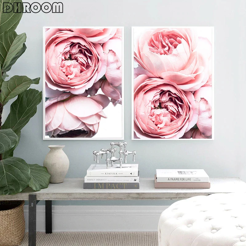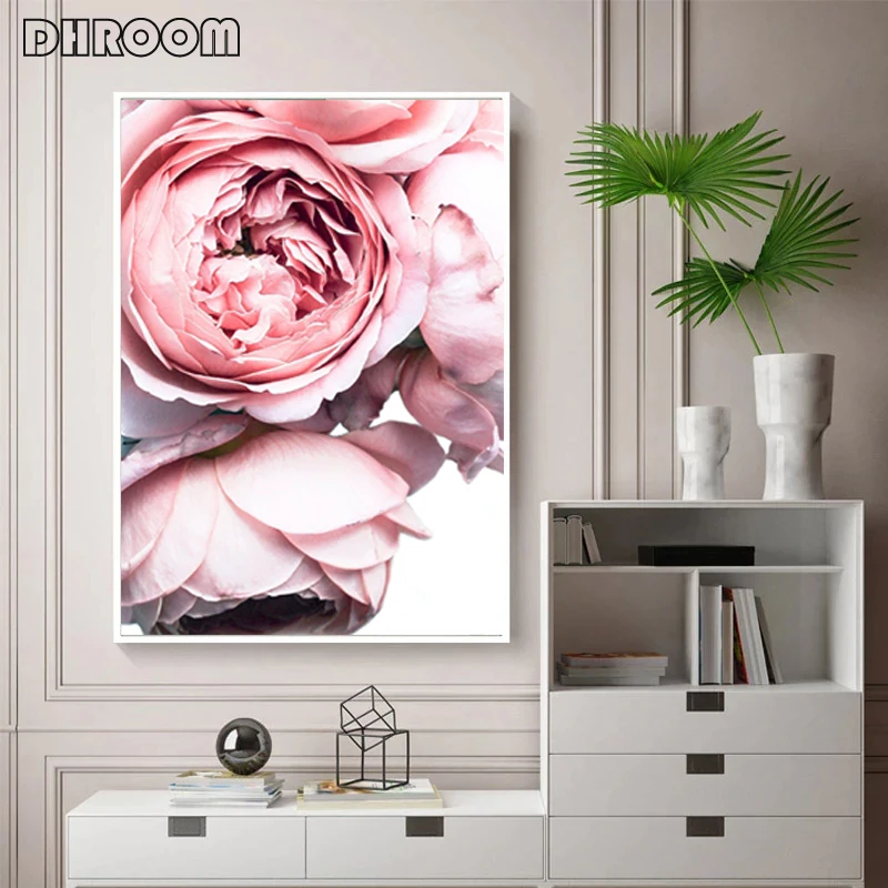 Настенный постер с принтом розовых цветов, Современная Картина на холсте с румянами, пионами, украшение для гостиной